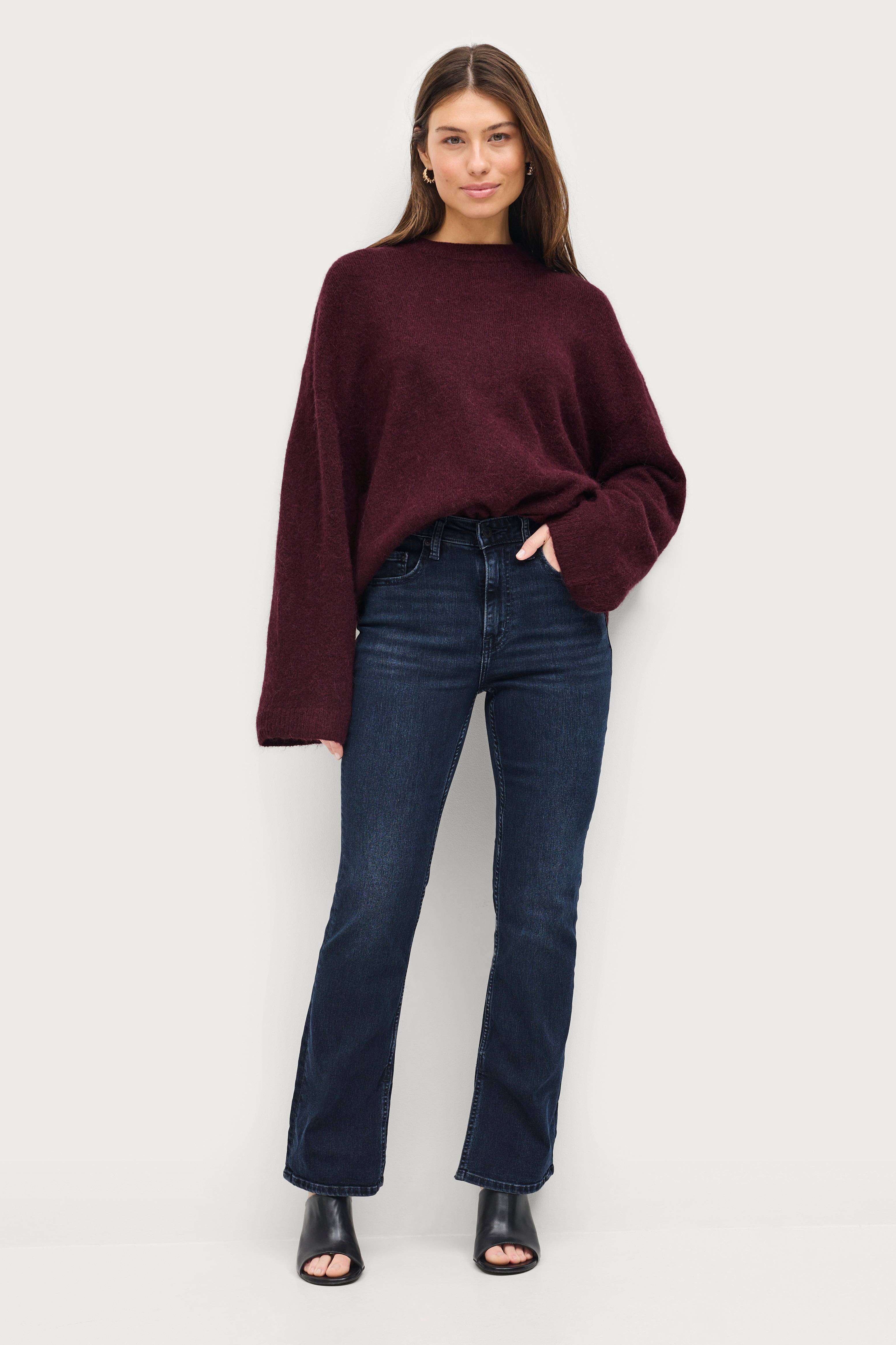 • Strækdenim• Høj talje• Smal pasform• Benafslutninger med svaj• Gylp med lynlås• Femlommemodel