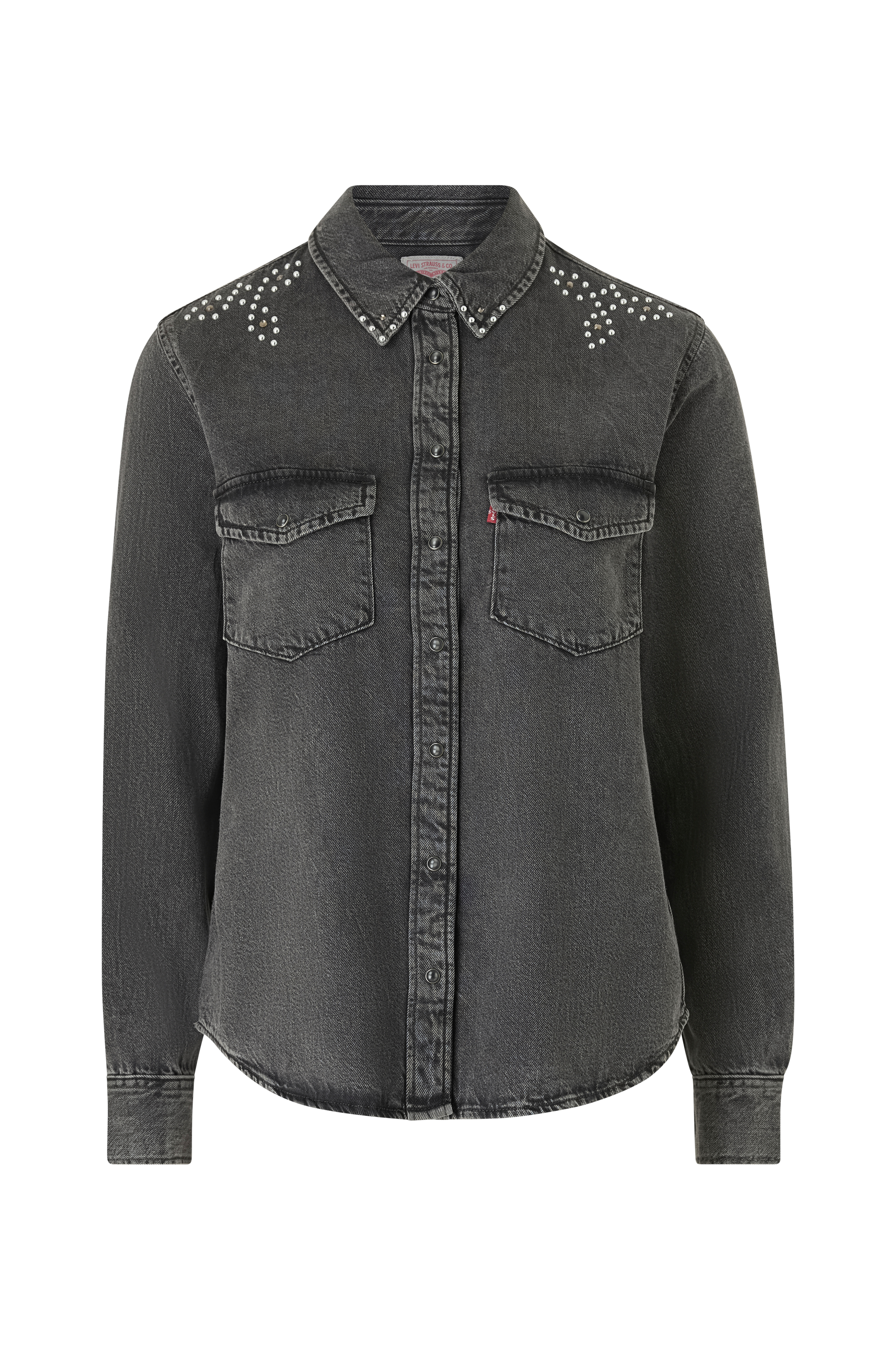 Jeansskjorte Essential Western Going Steady fra Levi's. Let figursyet model med lille krave og trykknapper hele vejen ned foran. V-skåret skulderbærestykke bagpå og brystlommer med klap.