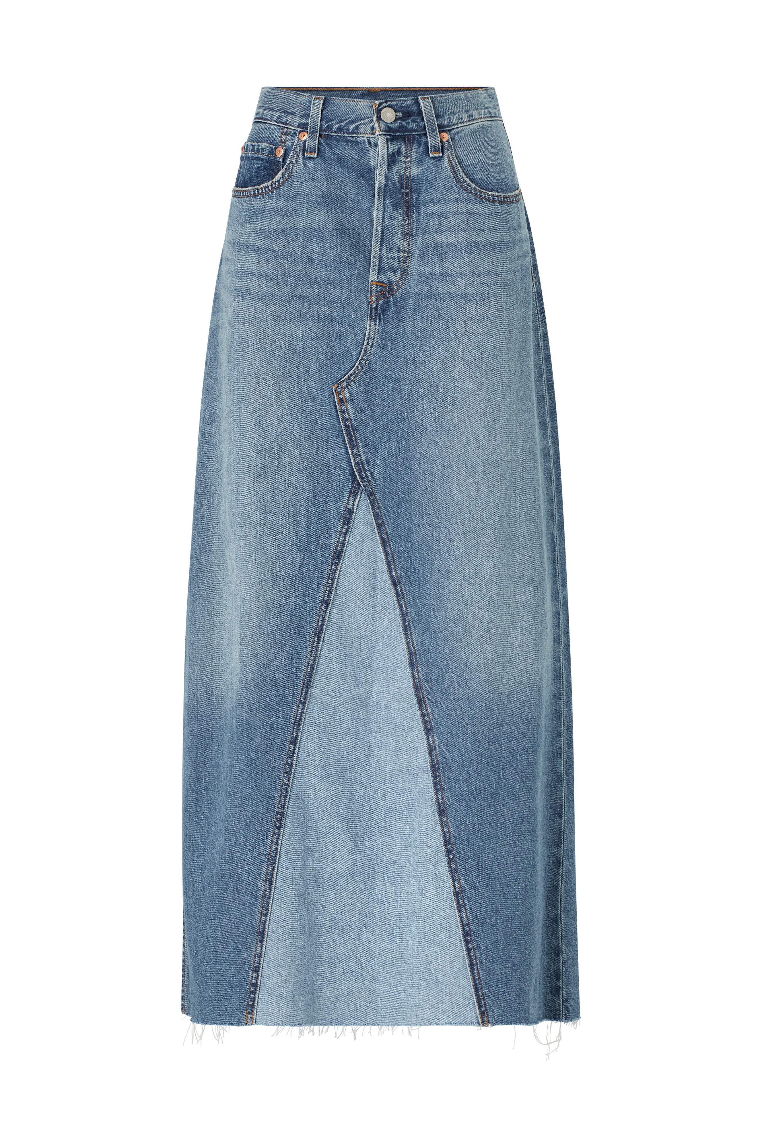 • Femlommemodel med svaj med knaplukning• Matchende indlæg foran og bagpå• Høj slids i den ene side• Længde: 101 cm i størrelse 27