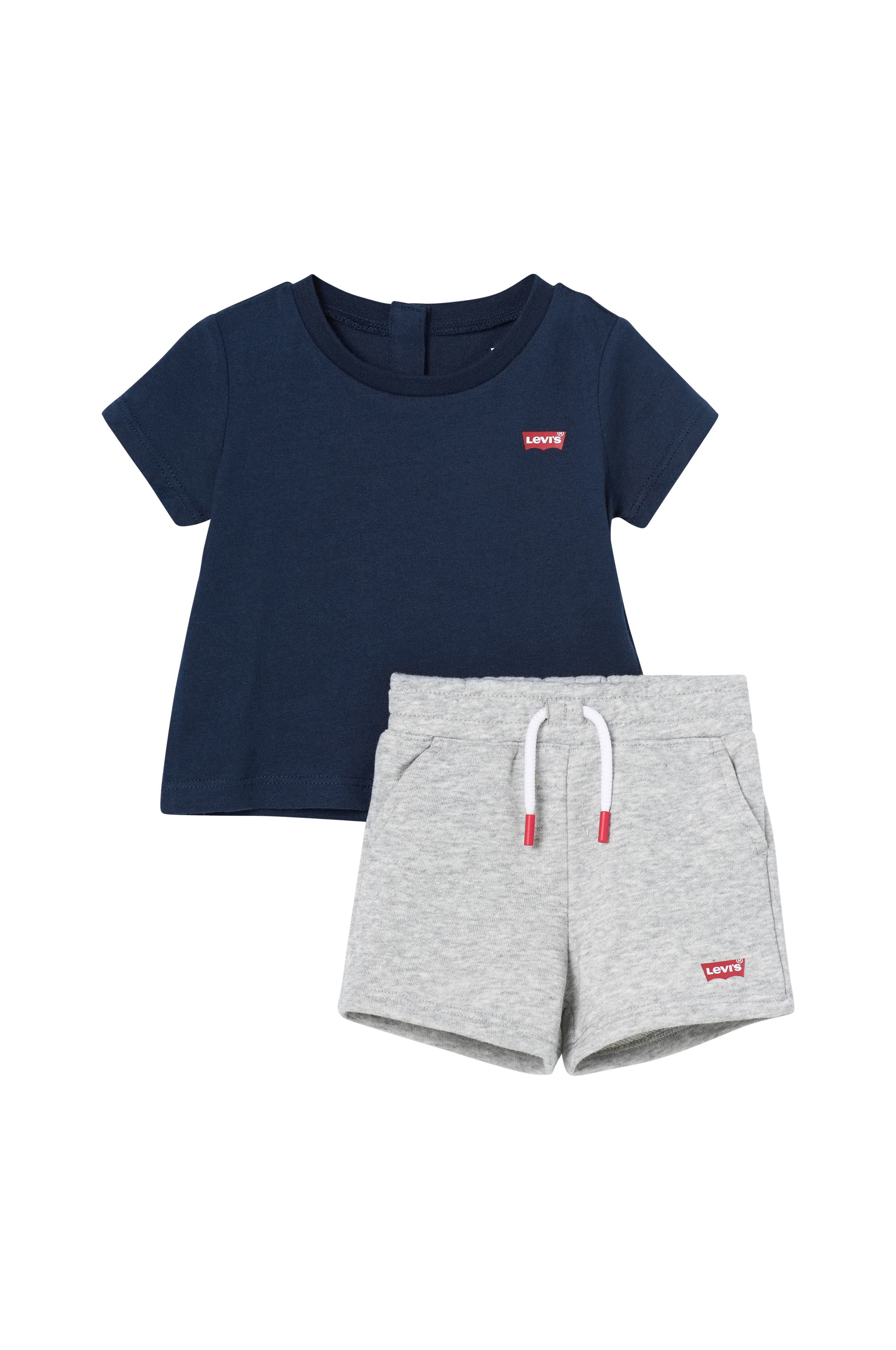 • Babysæt med t-shirt og sweatshorts• T-shirt med rund halsudskæring og trykknapper bagpå• Shorts med elastisk talje