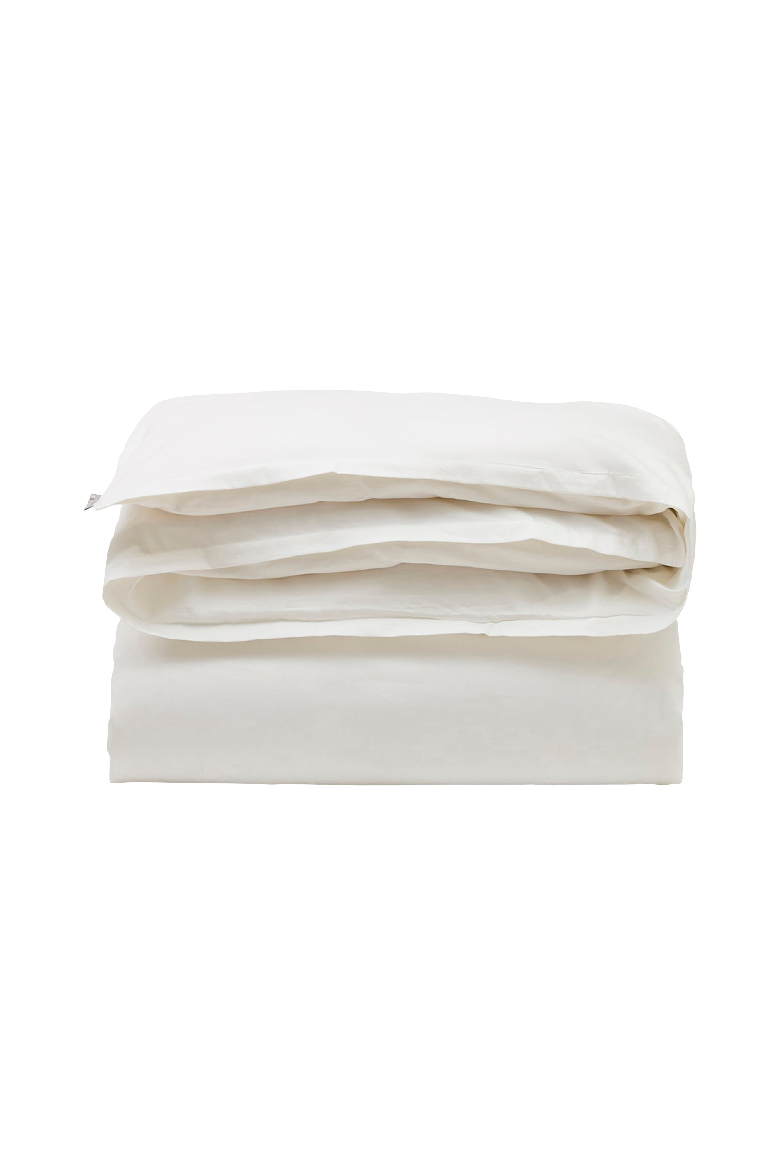 Dette dynebetræk er skåret i en blanding af allergivenlig morbærsilke og bomuld og har en let blank overflade takket være satinstoffet. Yderligere detaljer til vores dynebetræk i bomuldssilke er lukning med logo-prægede gummiknapper langs den nederste kant og en lille vinge langs kanterne.