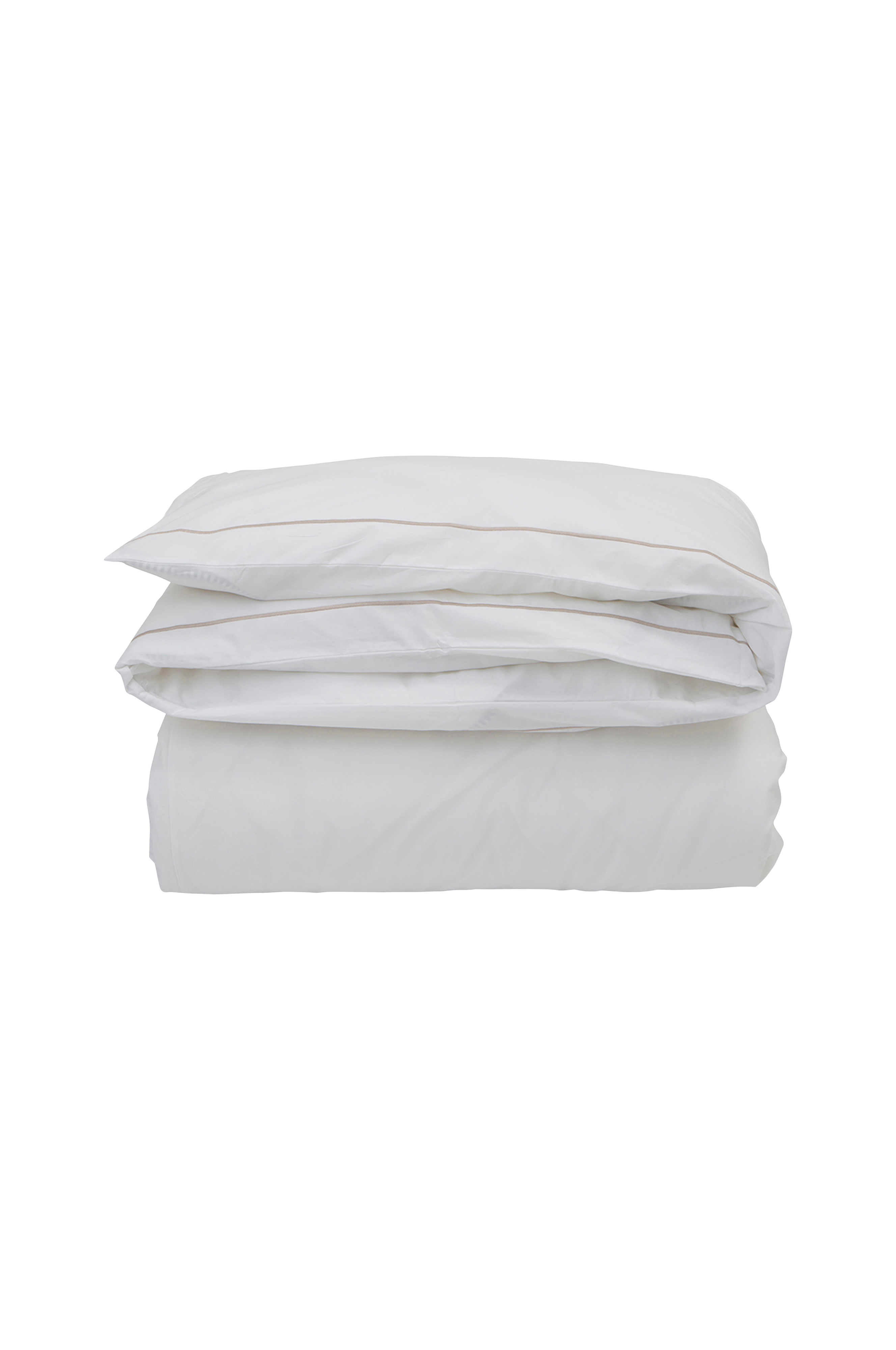Dynebetræk fra Lexington i blød, glat bomuldspercale med dekorativ vinge langs siderne. Trykknapper af gummi i kanten forneden. To størrelser, 150x210 cm og 220x220 cm.