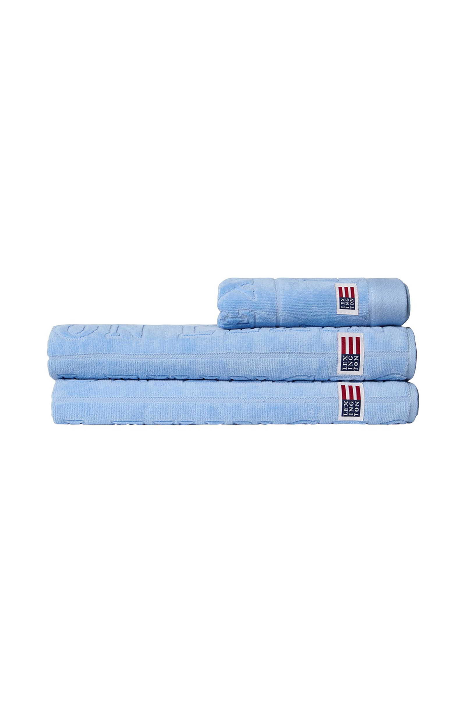 Velour Jacquard Logo Towel bringer luksuriøs komfort og stil til dit badeværelse. Dette bløde og absorberende håndklæde er fremstillet af 100 % ringspundet bomuldsvelourfrotté af høj kvalitet og har et all-over Jacquard tekst logo design, der giver et sofistikeret præg. Den høje vægt på 500 g sikrer overlegen kvalitet og holdbarhed, mens de foldede kanter i top og bund giver en raffineret finish. Lexington logo nederst på forsiden.