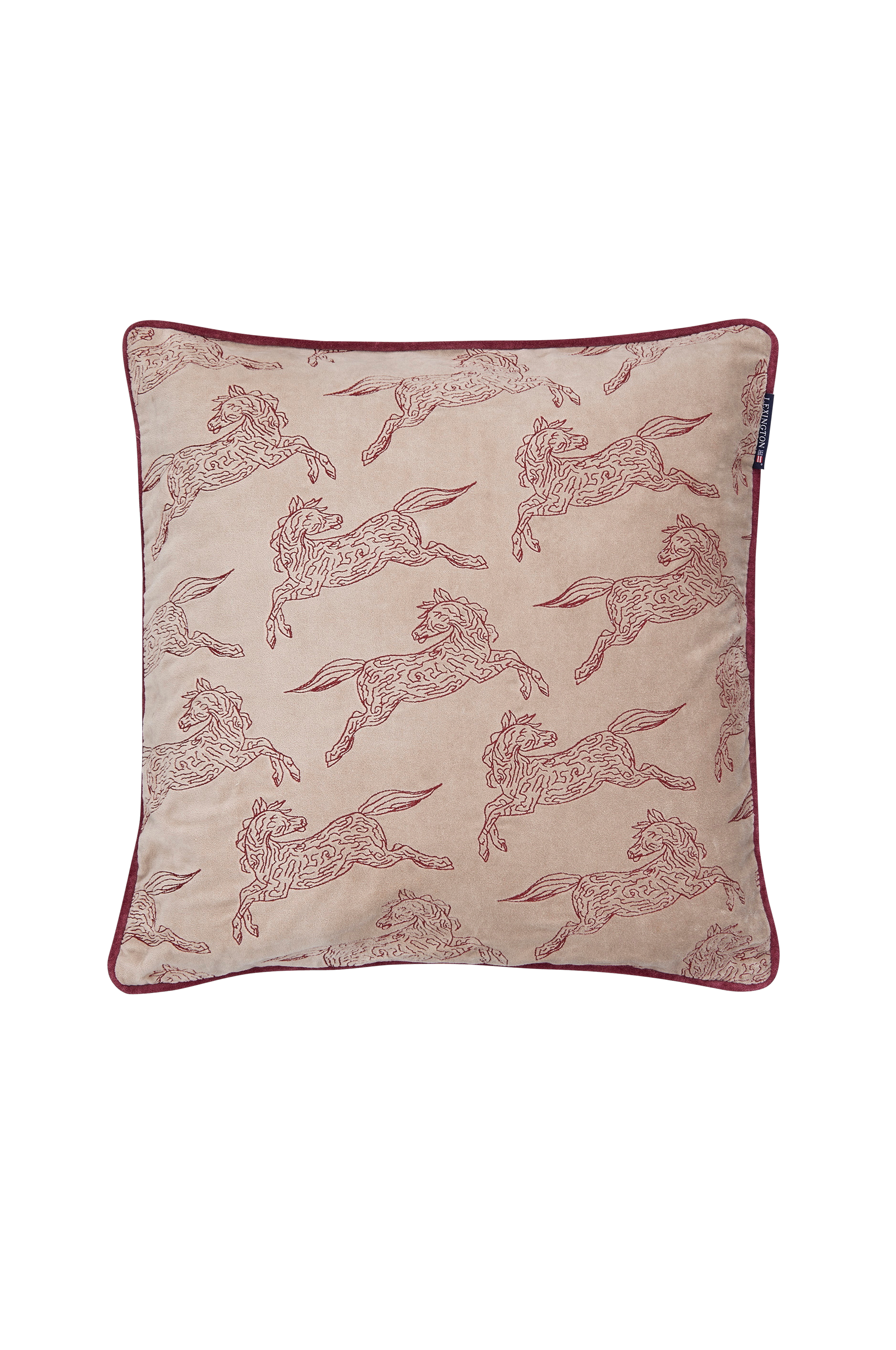Løft din boligindretning med vores udsøgte Horses Cotton Velvet Pillow Cover i et sofistikeret beige og burgunderfarvet design. Det elegante broderede hestemotiv skaber et fantastisk visuelt udtryk og tilføjer tekstur og håndværksmæssig charme til ethvert rum. Dette luksuriøse pudebetræk er fremstillet med omhyggelig opmærksomhed for detaljer og har farveafstemte fine kanter og vores karakteristiske Lexington-flaglogo diskret syet i det øverste hjørne.
