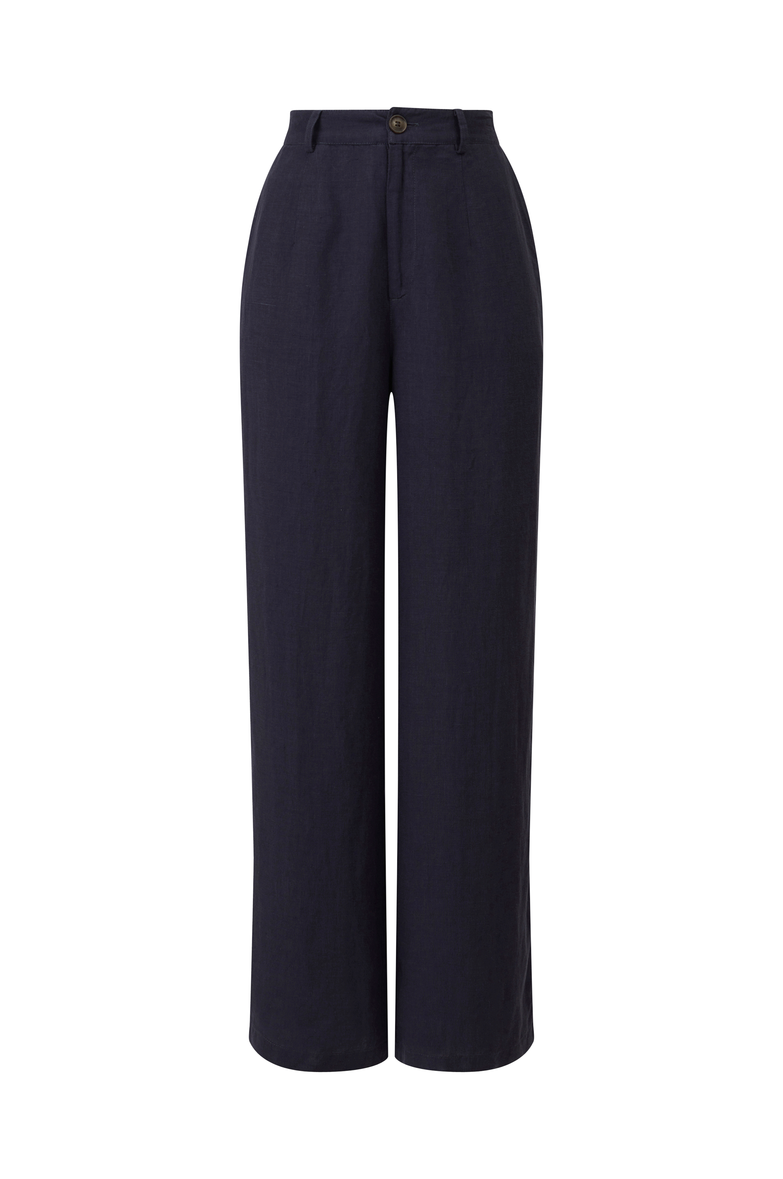 • Lige, brede ben• Elastisk bånd bagpå ved taljen• Gylp med lynlås• To sidelommer• En baglomme