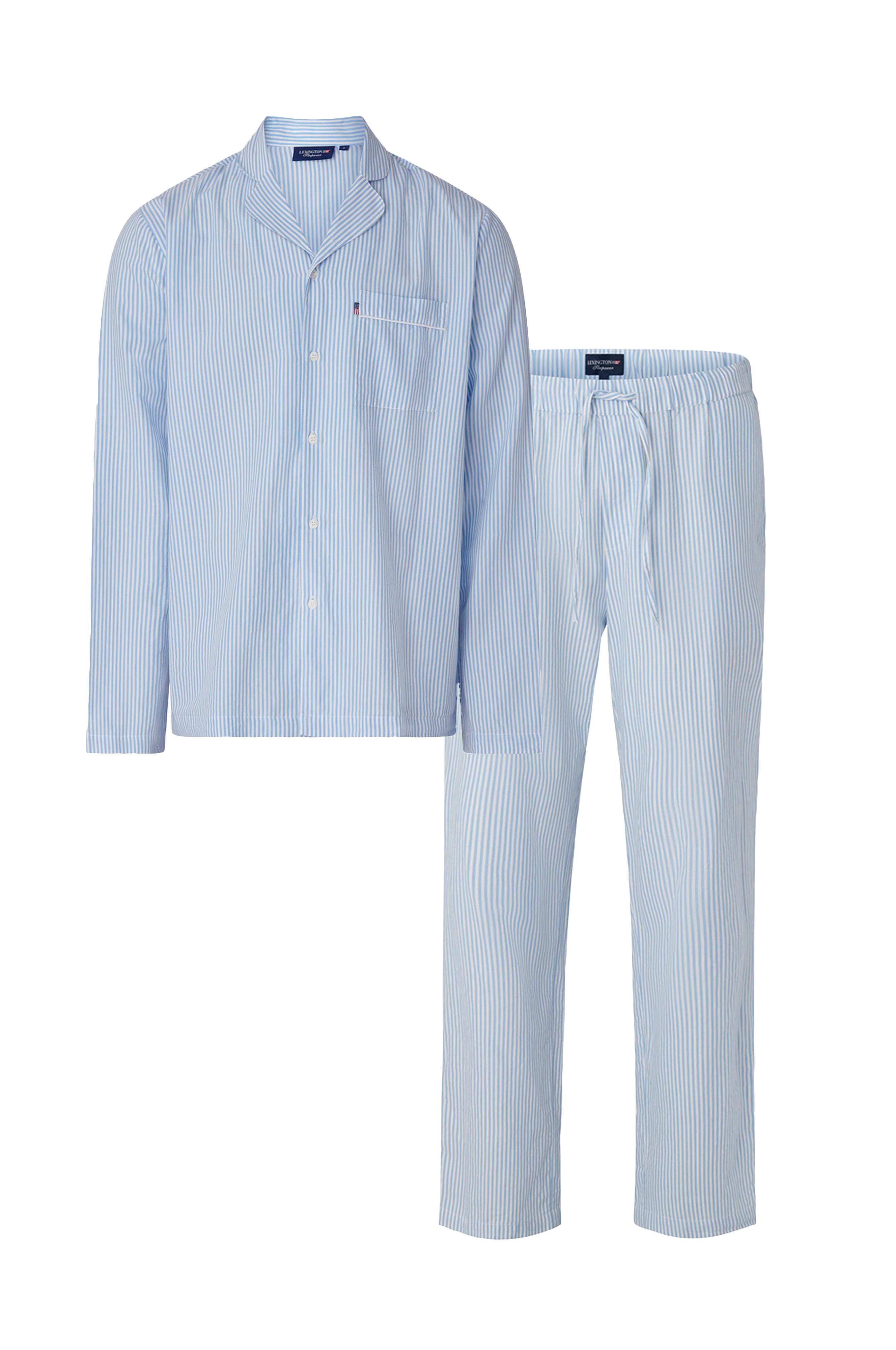 Nyd en god nats søvn eller en afslappende start på dagen med morgenudgaven af din yndlingsavis i vores Eddie cotton light oxford-pyjamas. Med en oxfordvævning i 100 % bomuld, lange ærmer og lige ben er dette den helt rigtige pyjamas, som vil blive din favorit. Vi er vilde med piping-detaljerne på lommerne.