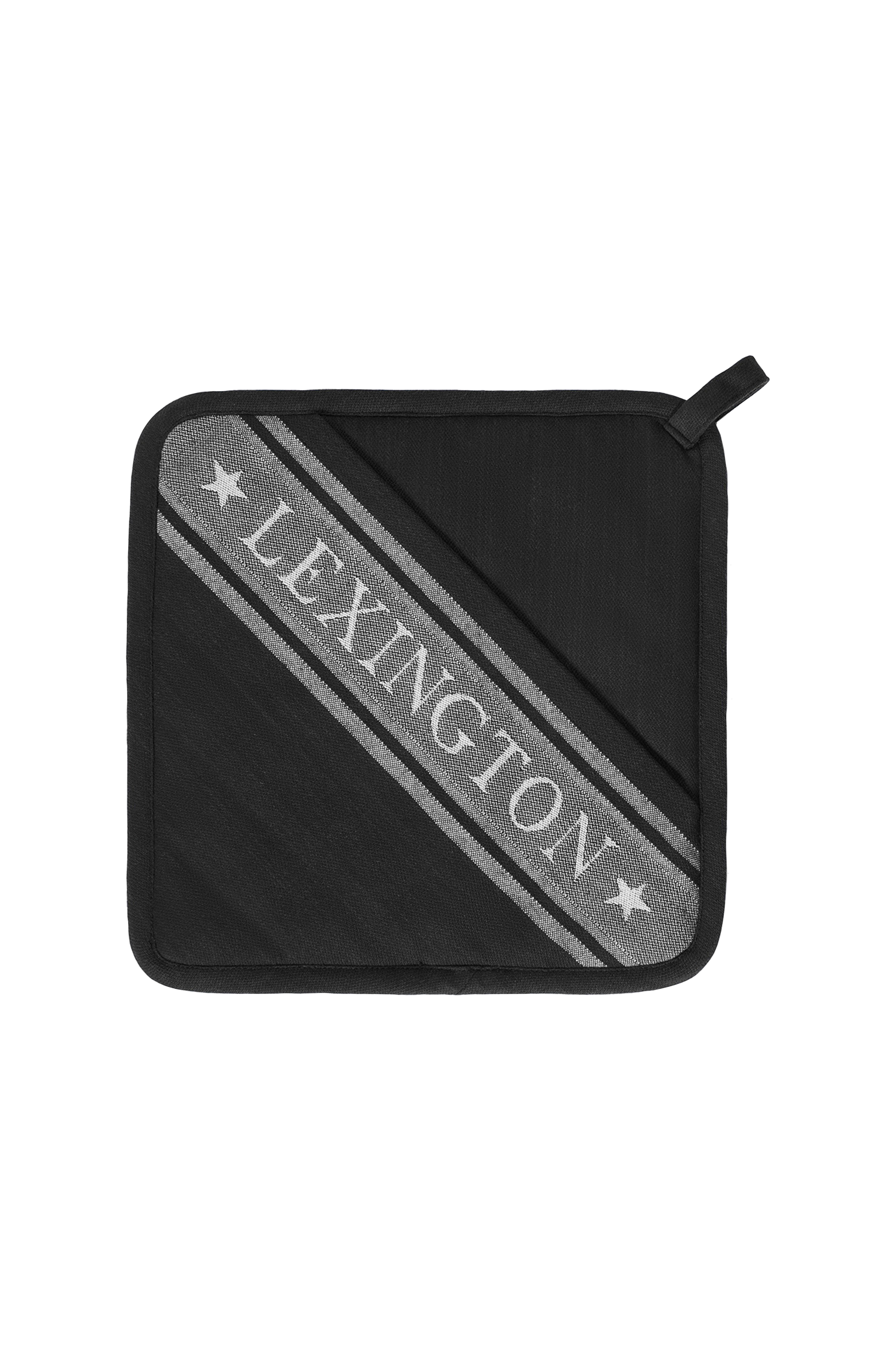 Denne klassiske grydelap med bøjle er fremstillet af 100 % bomuld og har Lexington-logo og jacquardstriber med stjerner. Fuldend dit køkken med det matchende håndklæde, vante og forklæde. Fås i kjoleblå/hvid, due/hvid, salviegrøn/hvid og sort/hvid.