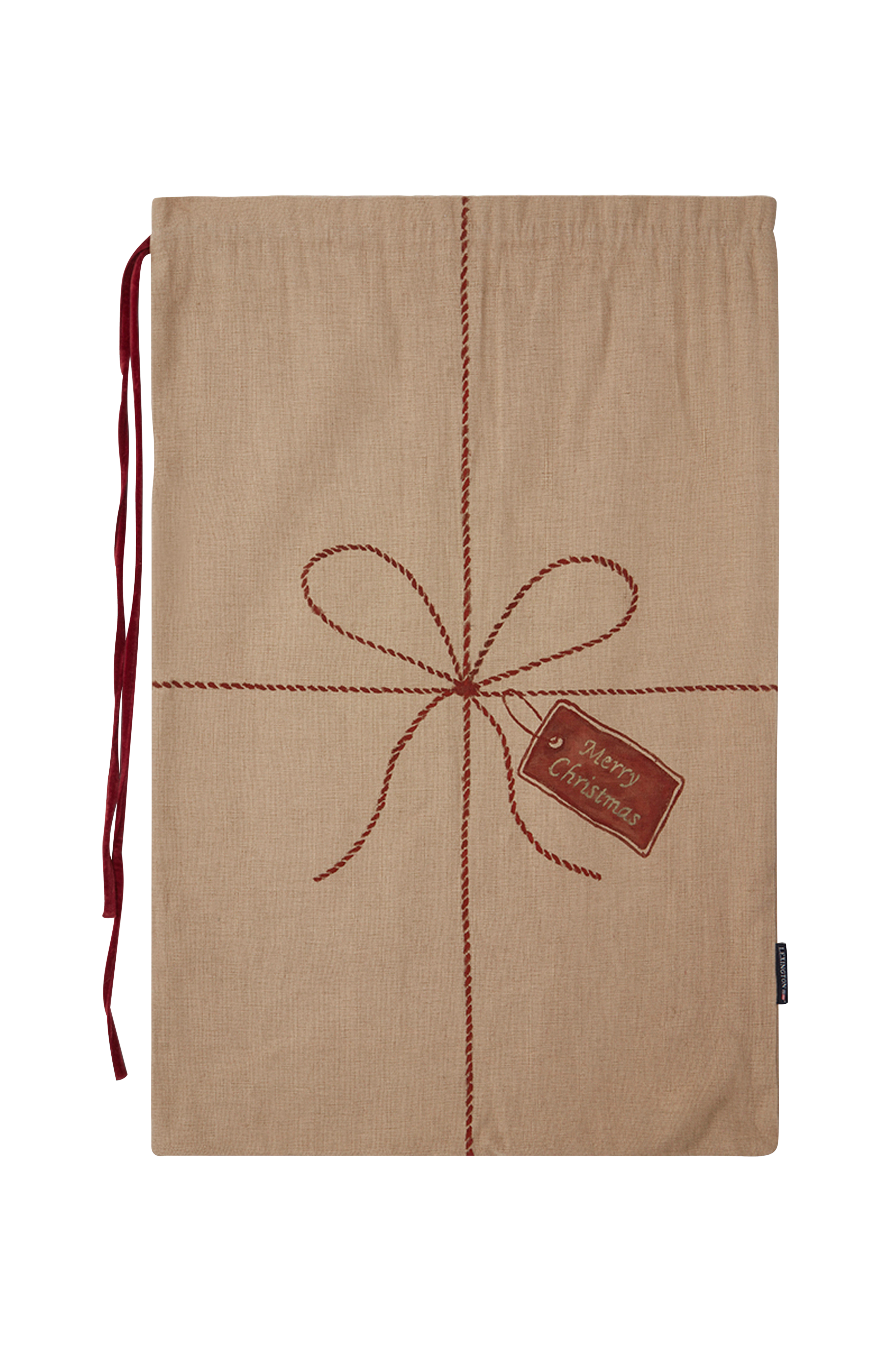 Vores julegavesæk i juteblanding er perfekt til transport af julegaver eller til indpakning af ekstra store gaver. Udsmykket med vores eksklusive sløjfeprint og en elegant fløjlssnor er den ligesom julemandens sæk, men med meget mere stil. Fremstillet af en blanding af jute og bomuld i høj kvalitet.