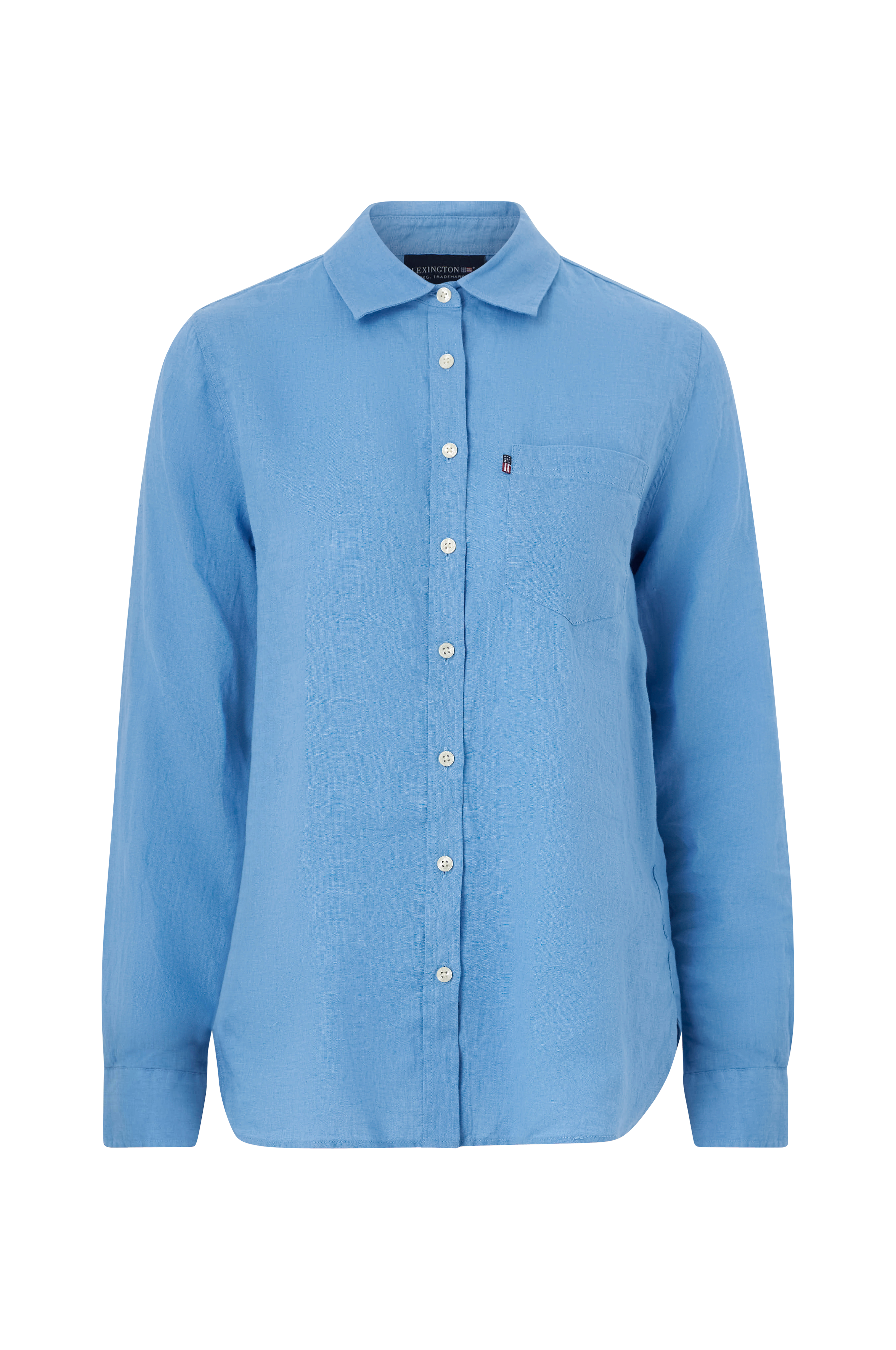 Denne klassiske hørskjorte er en tidløs nødvendighed i garderoben. Den har lange ærmer og knaplukning foran og giver et skarpt og rent look. Brystlommen med et diskret Lexington-flagmærke tilføjer et strejf af detaljer til det minimalistiske design. Denne lette hørskjorte er perfekt til enhver lejlighed og kombinerer ubesværet komfort og stil.