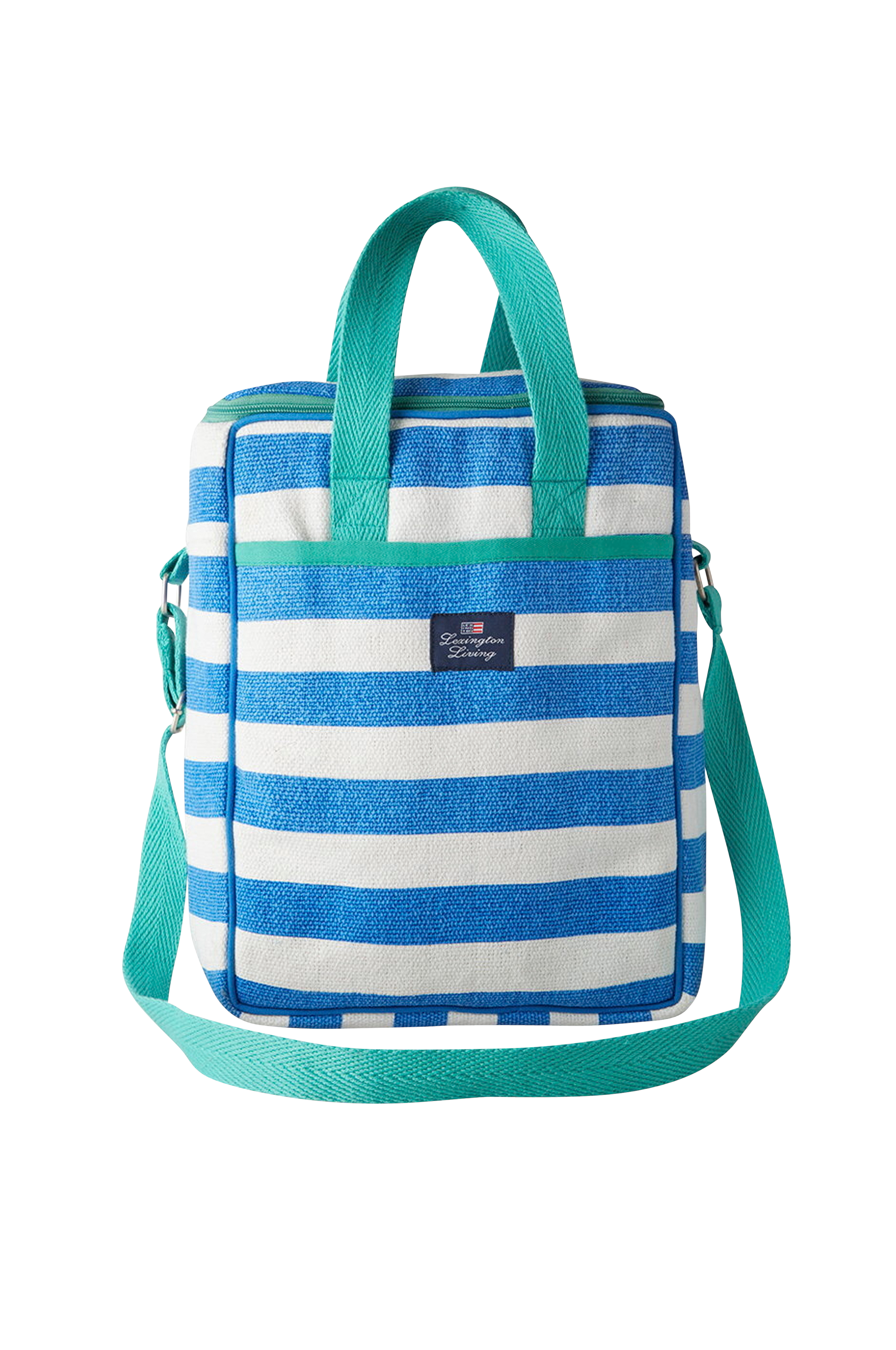 Denne stilfulde, stribede køletaske er perfekt, når du vil have kølede lækkerier på dine sommereventyr. Den er designet til at rumme en 1,5 liters flaske oprejst. Bærehåndtag og skulderstropper gør det nemt at bære og udvendige lommer foran og bagpå giver plads til endnu flere ting. Fremstillet af genindvundet, UV-bestandigt og vandafvisende lærred, tåler det tidens tand og afspejler din kærlighed til planeten.
