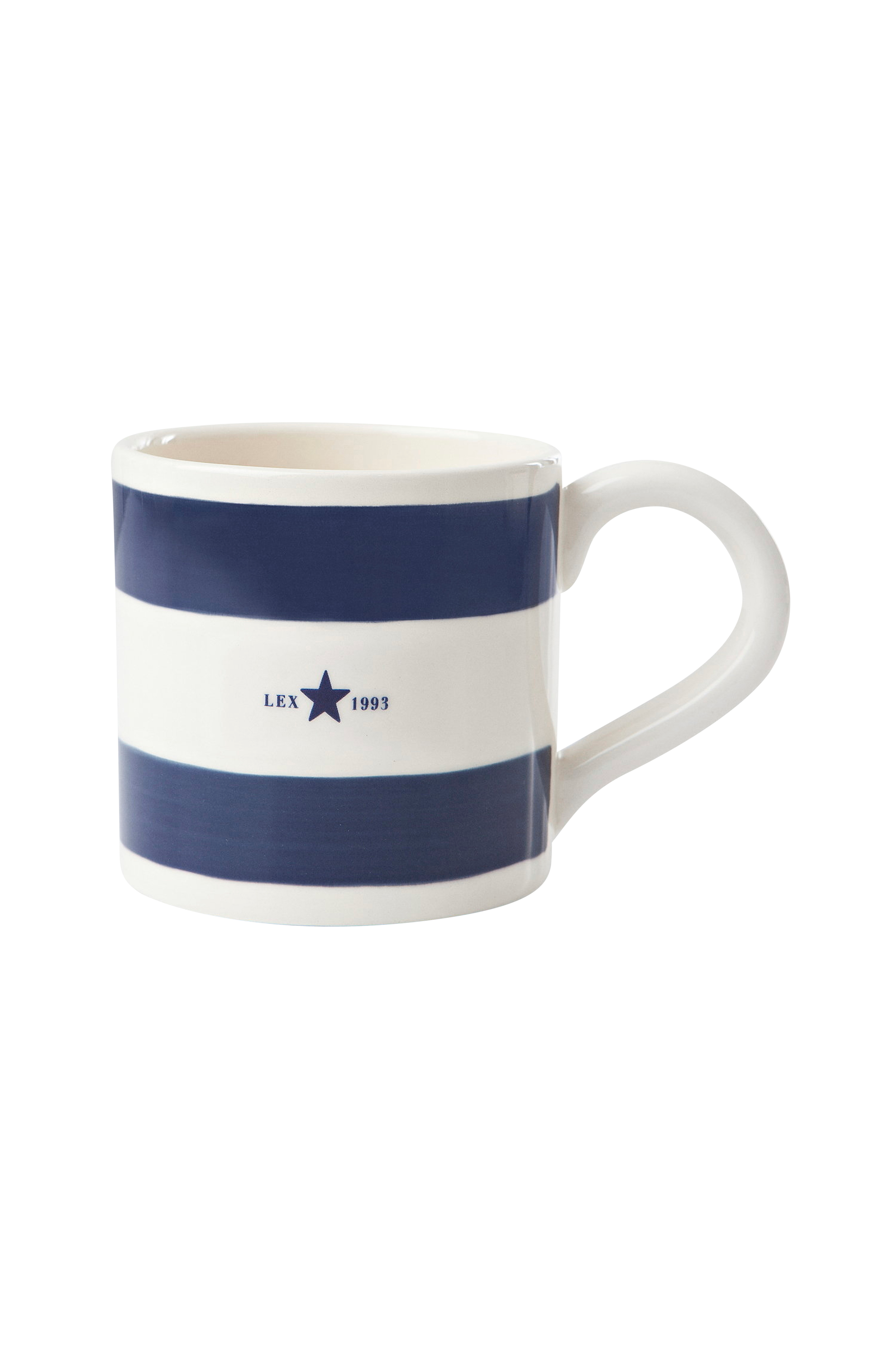 Håndmalet krus i keramisk stentøj med logo. Hvert krus har et unikt præg. Mål: 9 cm i diameter.