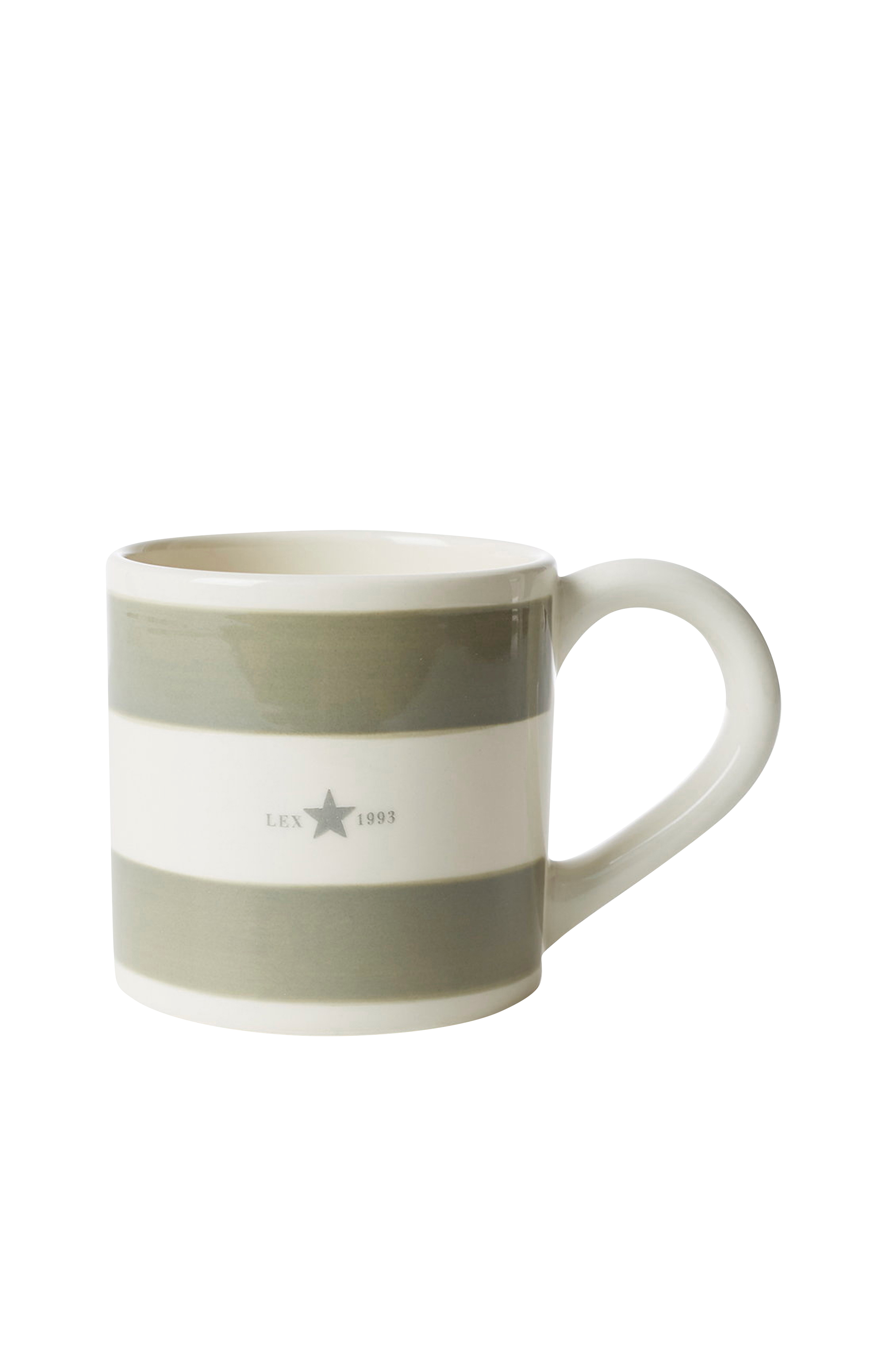 Håndmalet krus i keramisk stentøj med logo. Hvert krus har et unikt præg. Mål: 9 cm i diameter.