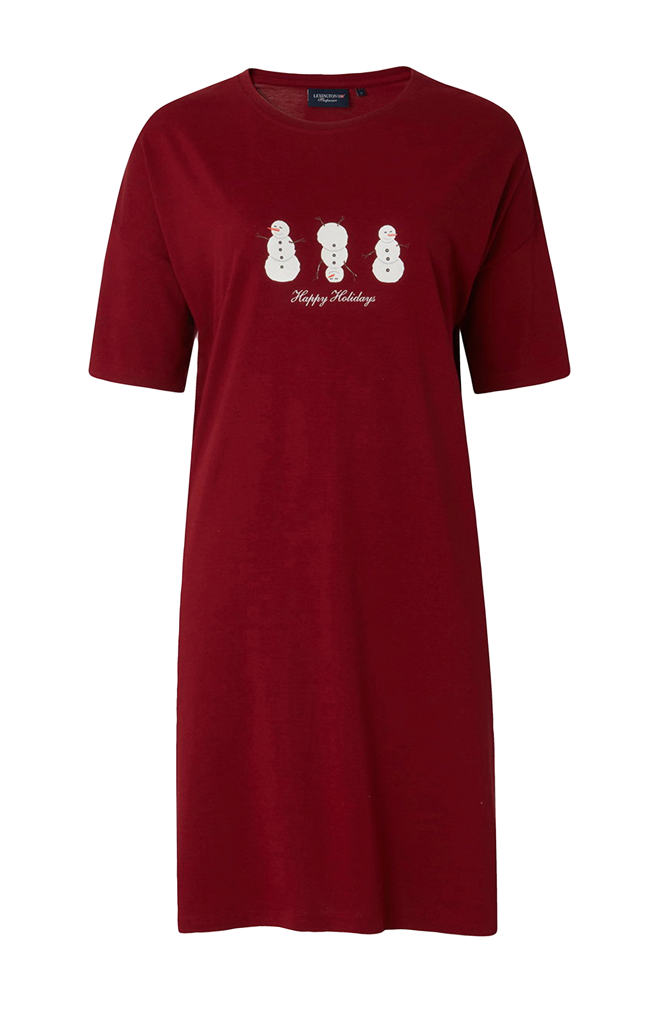 Drøm sødt i Lexingtons utroligt bløde natkjole Molly i økologisk bomuld og modal. Natkjolen har en afslappet T-shirtstil med korte ærmer og lave skuldre med tre søde snemænd og teksten "Happy Holidays". Den er fremstillet modal, en kunstig, plantebaseret fiber som er blød og silkeglat og elegant draperes over kroppen. Lexington har blandet den med økologisk bomuld for at give den ultimative åndbarhed, hvilket gør den virkelig god mod planeten. Drøm sødt! Vaskeanvisning: Varm vask (40°), brug ikke blegemiddel, tørretumbles ved lav temperatur, stryges ved middelhøj temperatur og kan renses.