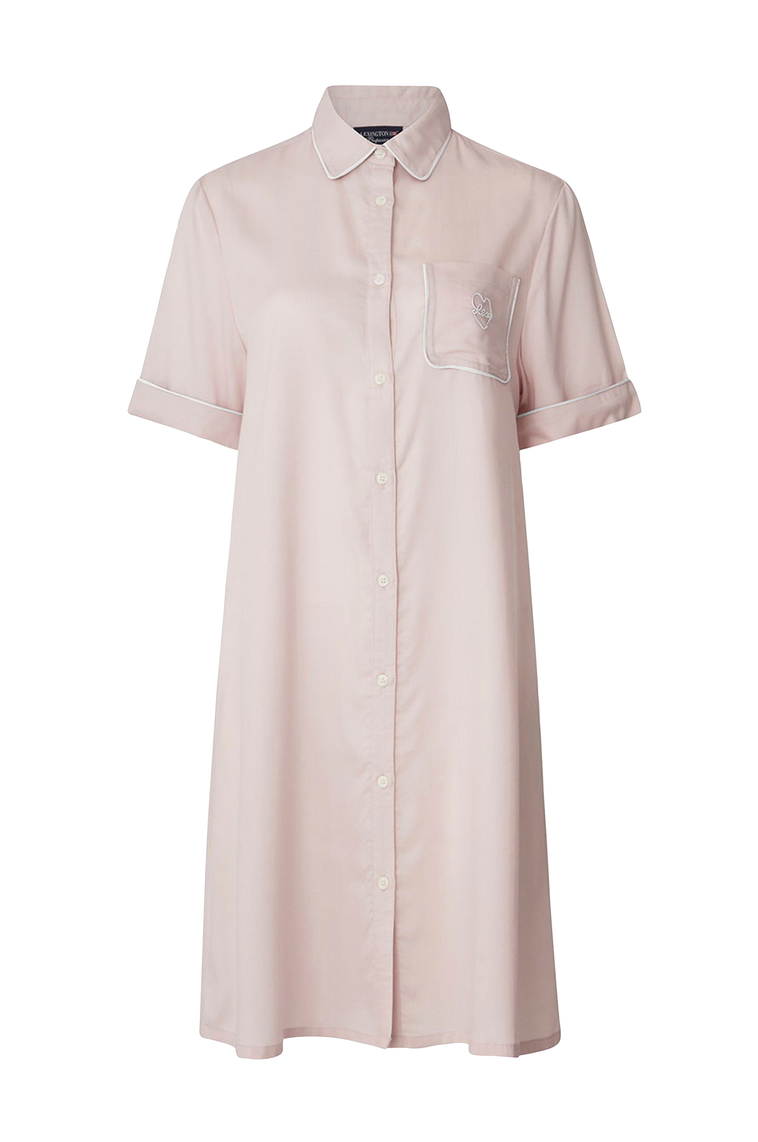 Lexingtons natskjorte Hailey i Lyocell byder på klassisk komfort. Den har en rummelig pasform, korte ærmer med brede manchetter, knapper foran og Lexingtons eksklusive hjertebroderi på brystet. Lyocell er en bæredygtig og biologisk nedbrydelig træfiber høstet fra bæredygtige plantager. Blødere end silke, mere absorberende end bomuld og køligere end hør.