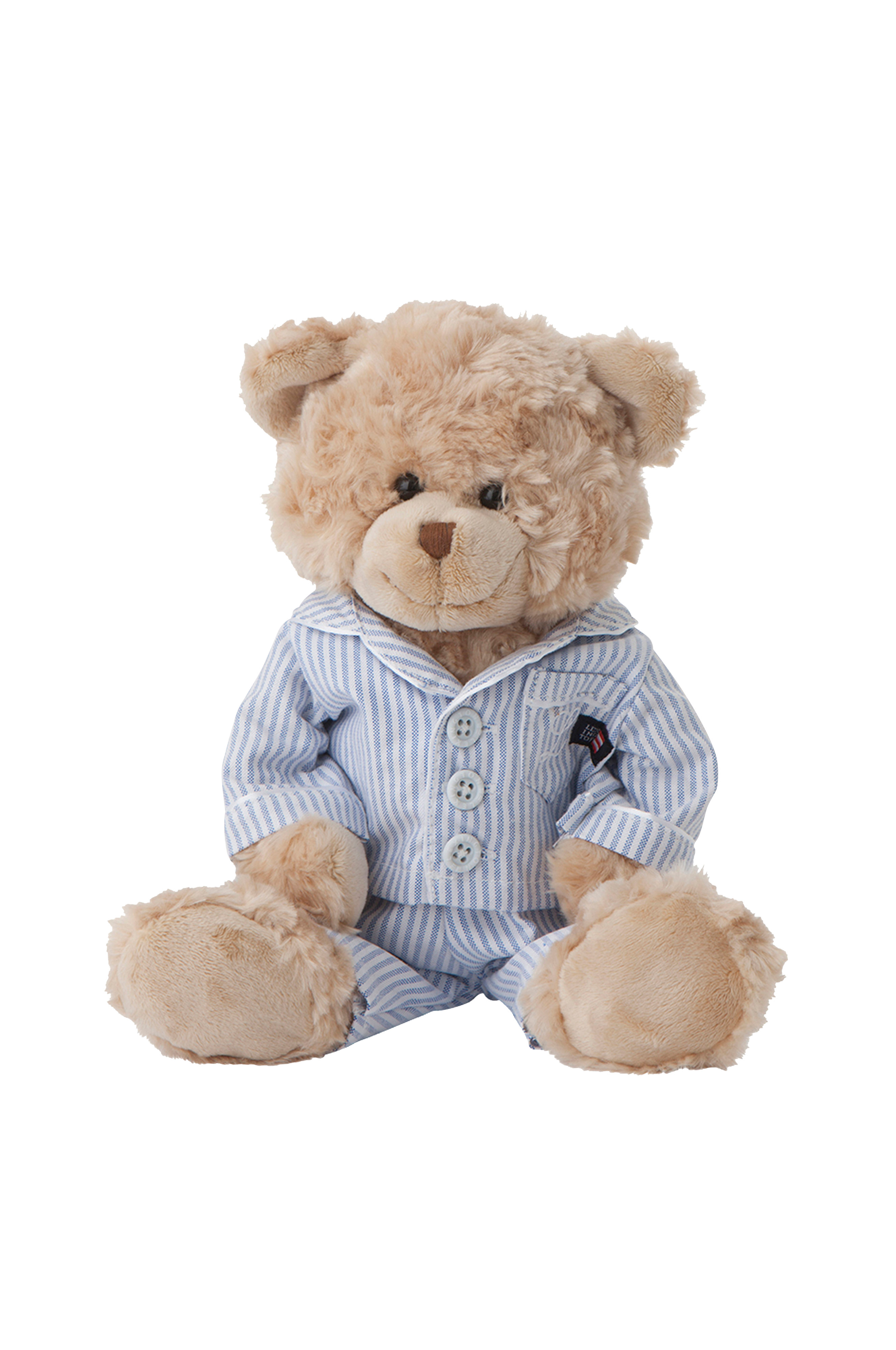 Plysbamse fra Lexington som er klædt i en klassisk oxfordpyjamas af bomuld. Højde ca. 32 cm.