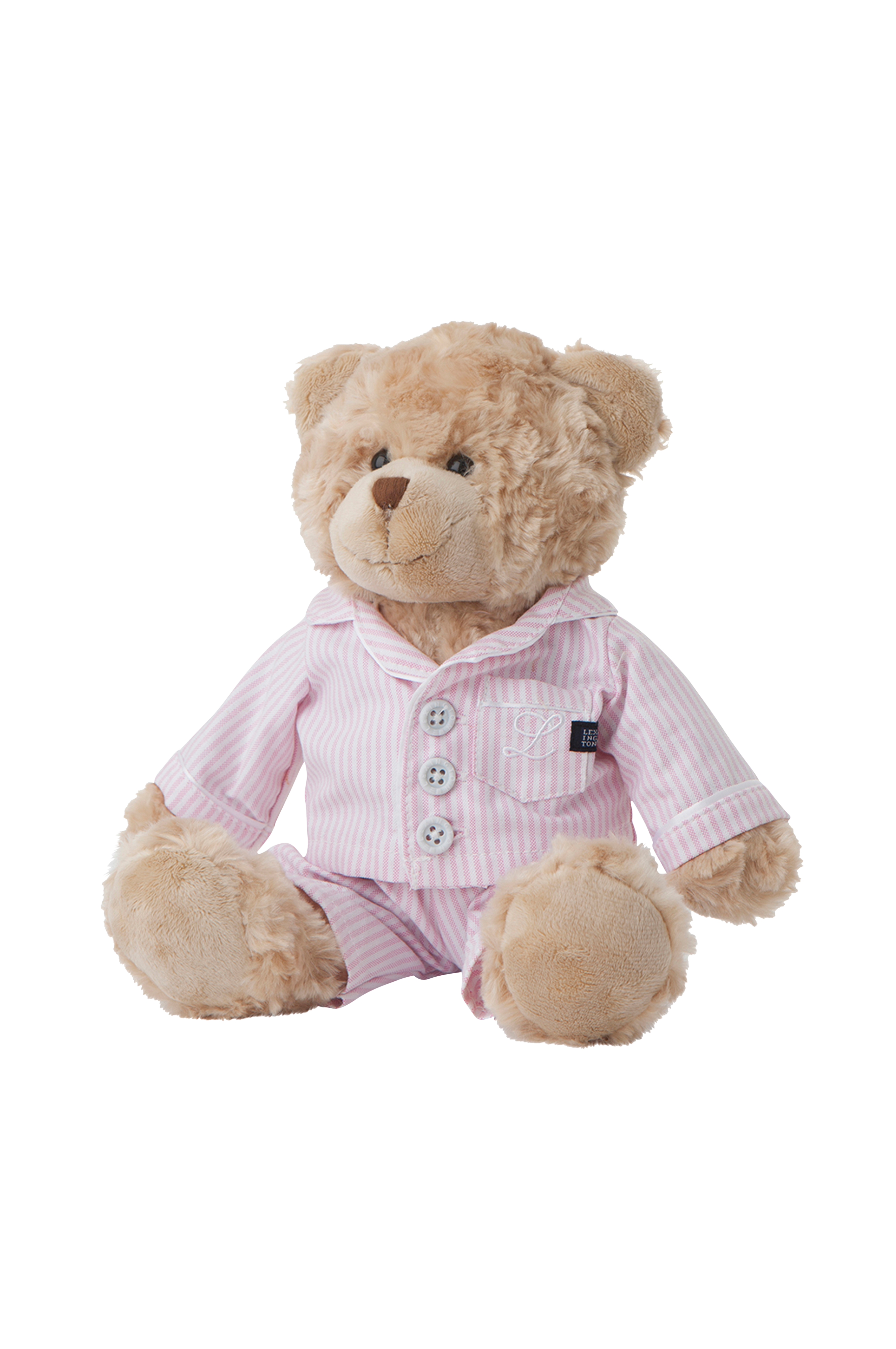 Plysbamse fra Lexington som er klædt i en klassisk oxfordpyjamas af bomuld. Højde ca. 32 cm.