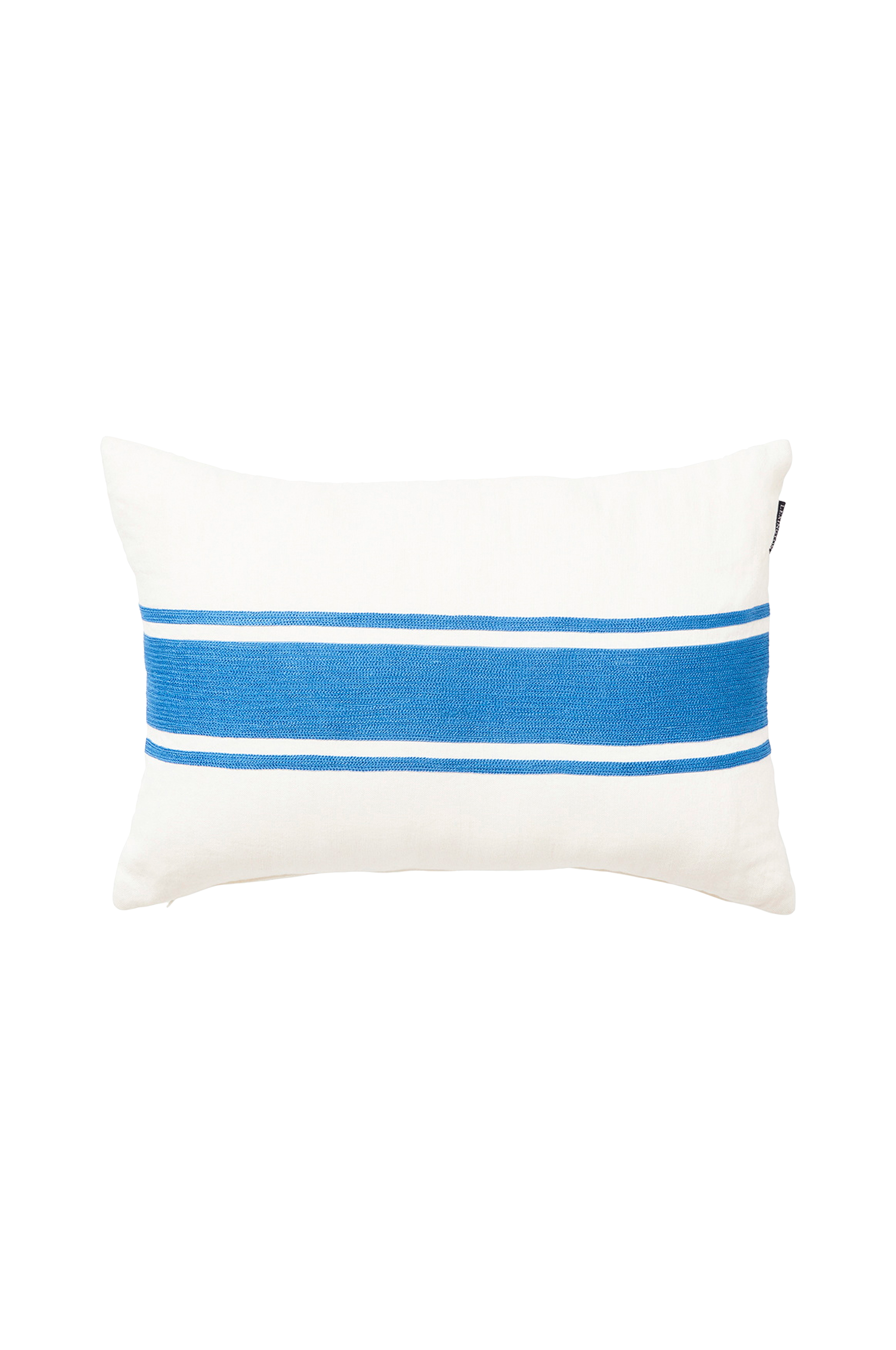 Lexington broderede pudebetræk med striber i midten giver skøn sommerstemning. Striber er altid en klassiker, og disse striber er ekstra brede, for et robust udtryk. Lexington har skabt dette pudebetræk af en luksuriøs hør/bomuldsblanding, og de har inkluderet en monteringspude og fyldt den med polyester.