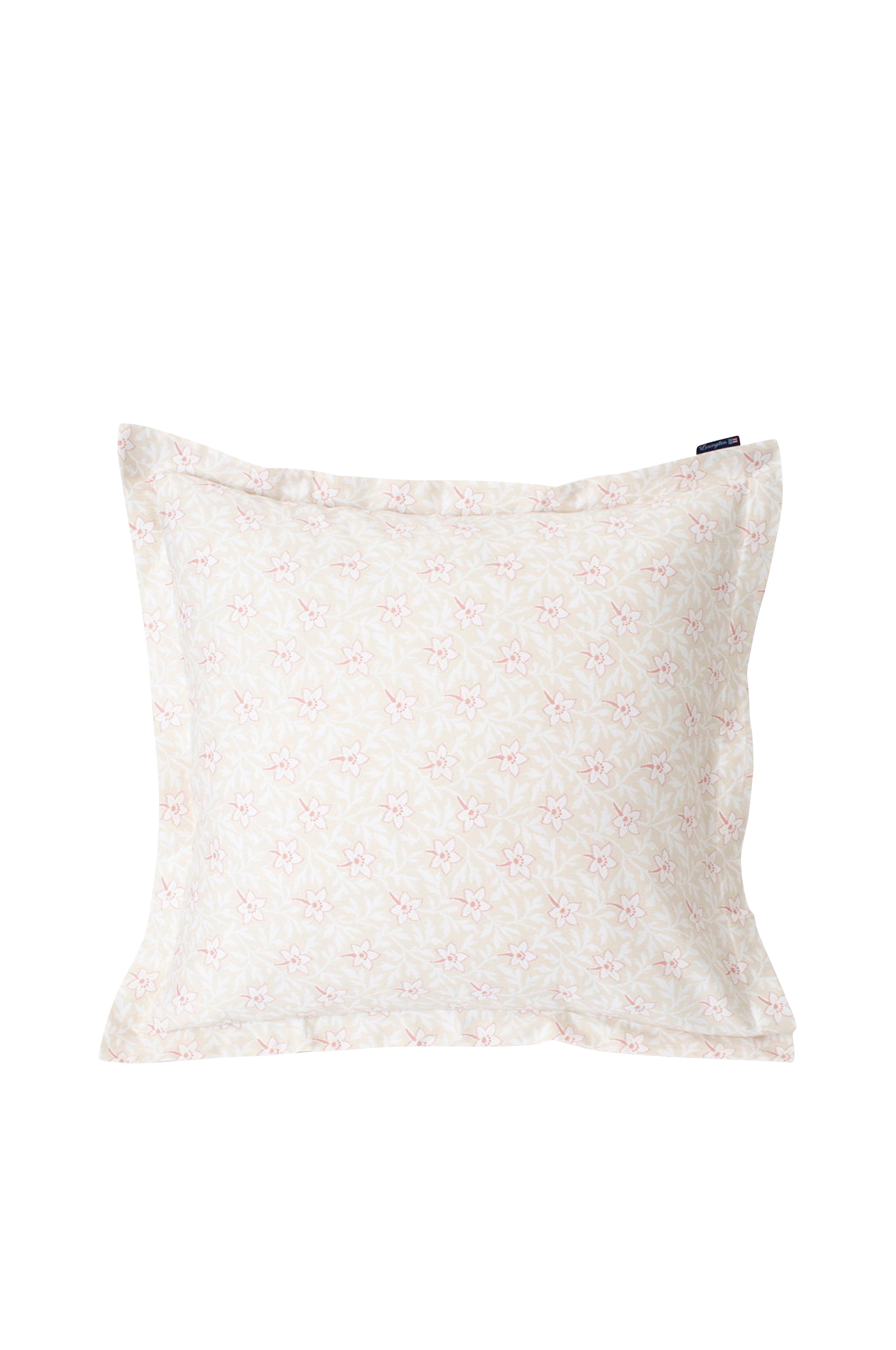 Pudebetræk i ren bomuldssatin med blomstret mønster. Dette pudebetræk med høj trådtæthed fuldendes af en kant og overlappende lukning.