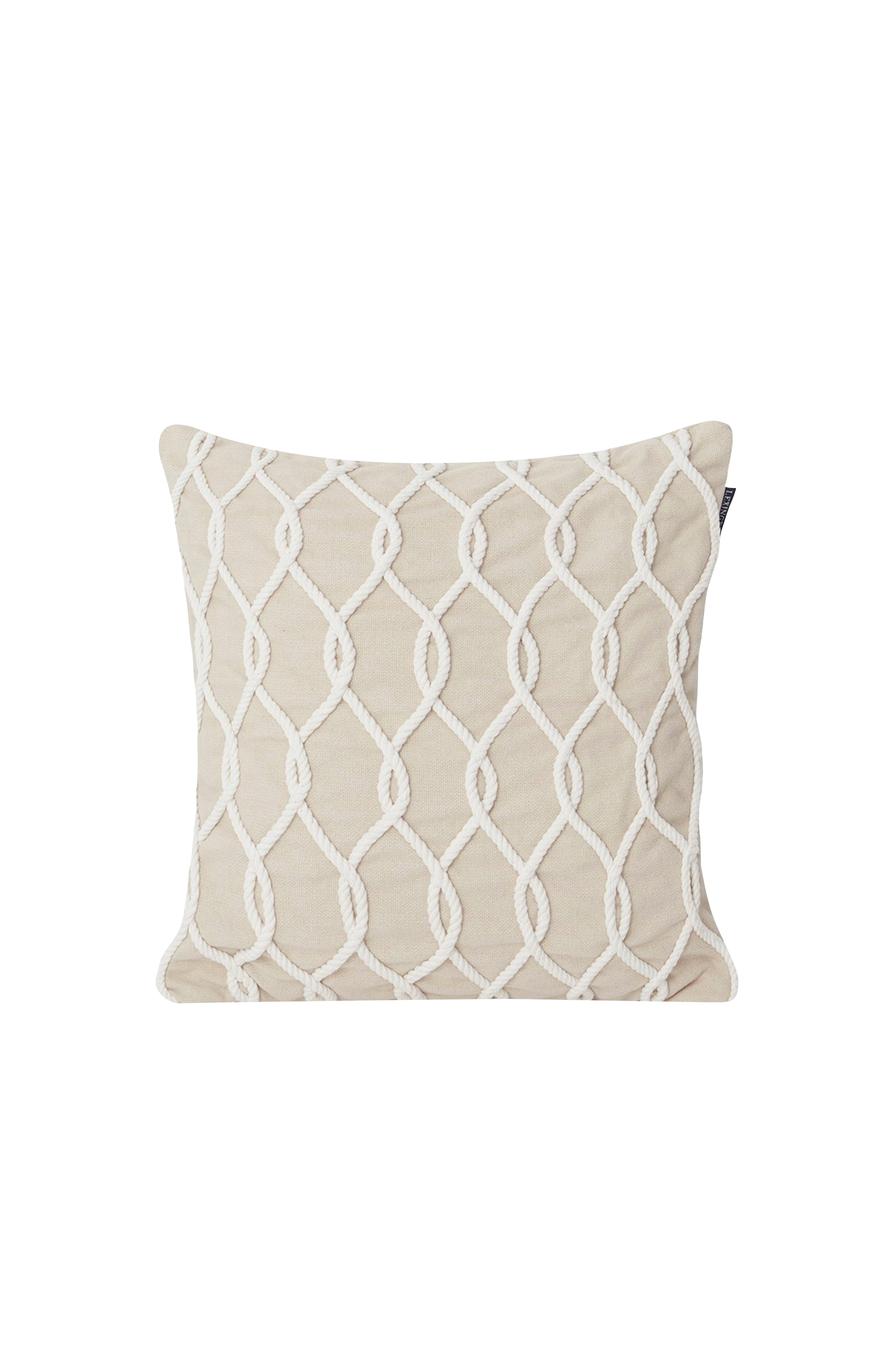 Rope er en klassisk indretningsdetalje i den maritime New England-stil, et nik til regionens lange tradition for fiskeri og søfart. Dette reb-udsmykkede pudebetræk bringer et stykke Nantucket til din stue. Det er sådan, at du kan høre bølgerne og mærke skumsprøjt fra det kølige hav. Kraftigt bomuldsstof i forskellige farver er dekoreret med et gennemgående mønster af sammenkædede, maritime reb, der er perfekte til sommerens sengetøj. Eller lad dem stråle i egen pragt på sofaen, sengen eller i lænestolen. Under alle omstændigheder er de den perfekte base for en maritim indretning.