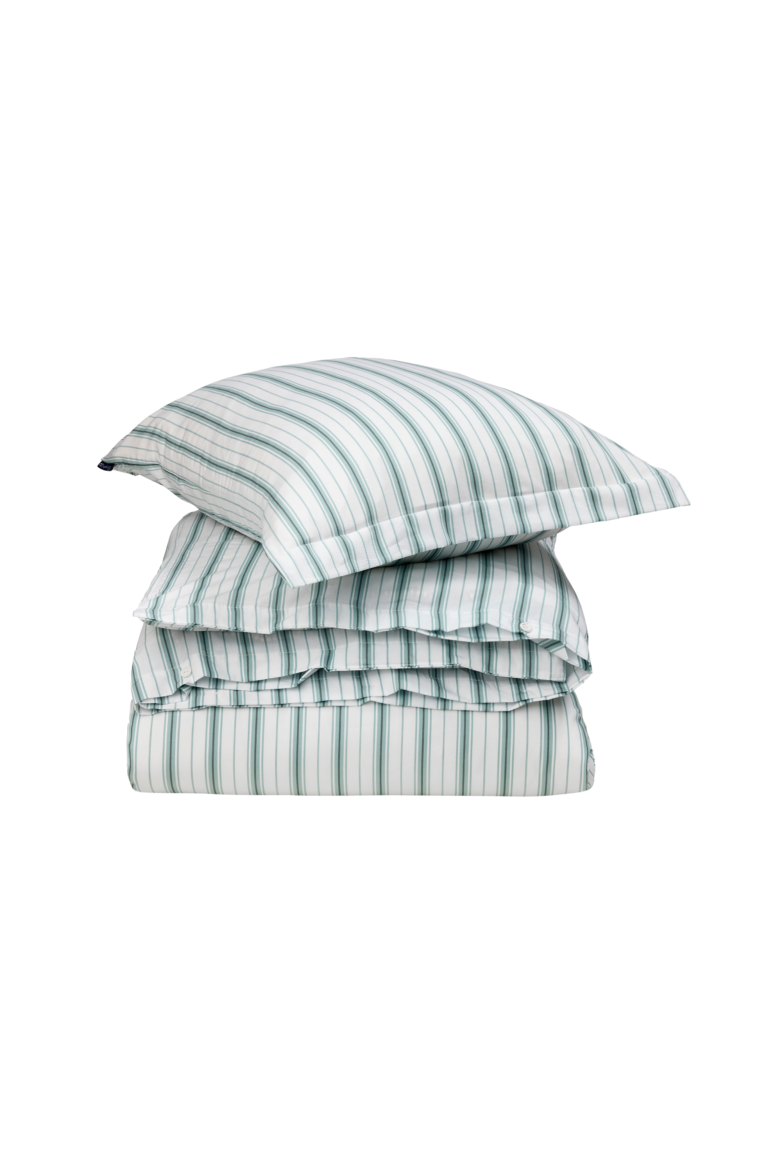 Omfavn frisk komfort med vores stribede bomuldspoplin-sengesæt i sprød hvid og eukalyptusgrøn. Fremstillet af blødt, køligt og absorberende poplin. Denne høje kvalitet giver en glat og ren finish. Sættet er en del af vores Spring-kollektion og indeholder et pudebetræk med kuvertlukning og vingede korte sider samt et dynebetræk med Lexington-logo og gummiknapper. Dette sengesæt bringer tidløs stil og komfort til dit hjem. Størrelse 150x210 /50x60 eller 220x220 / 50x60x2 cm.