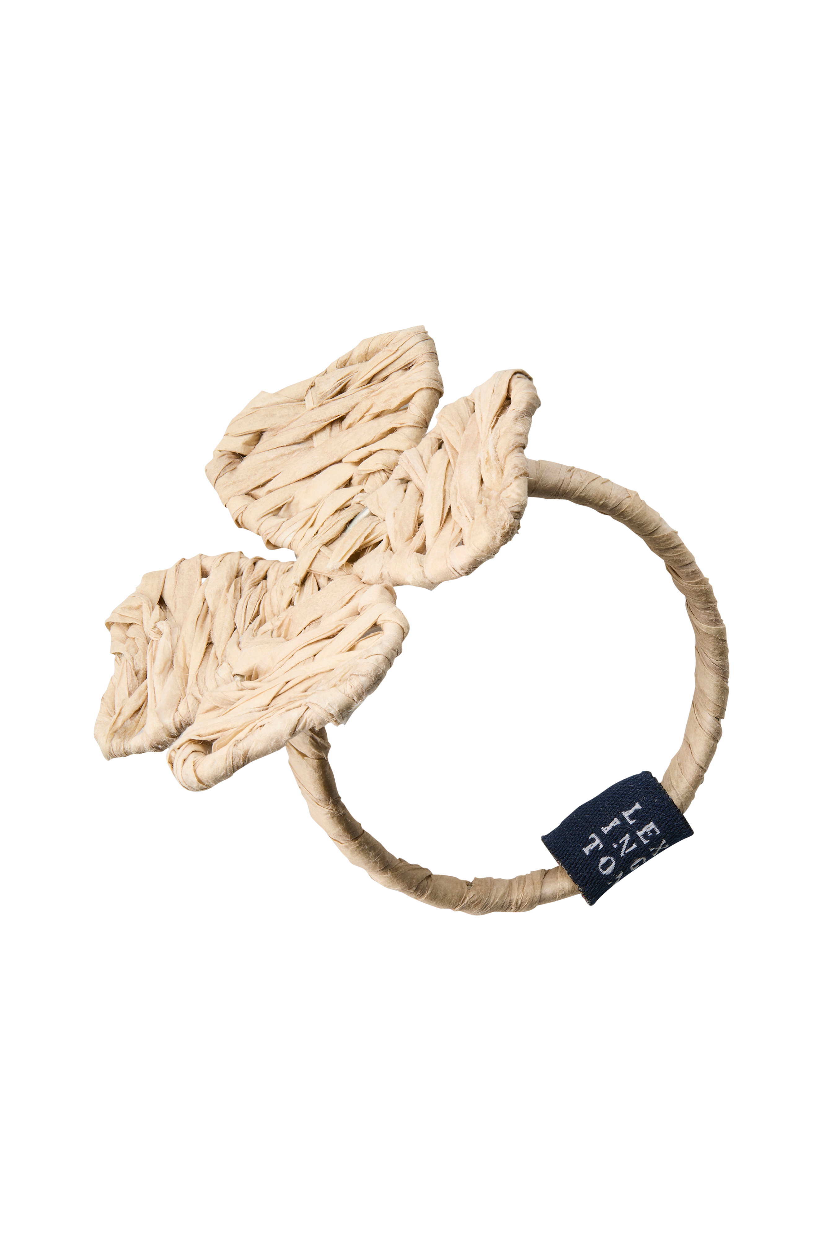Tilføj et strejf af charme og held og lykke til dit bord med vores håndlavede Four-Leaf Clover servietring, fremstillet af bæredygtig raffia dyrket i Indien. Dette smukt designede stykke, der er formet som et symbol på held, tilføjer en naturlig, håndværksmæssig fornemmelse til enhver indretning. Servietringen er lavet udelukkende af 100 % raffia og måler 6 x 6 cm foran med en diameter på 4,5 cm.