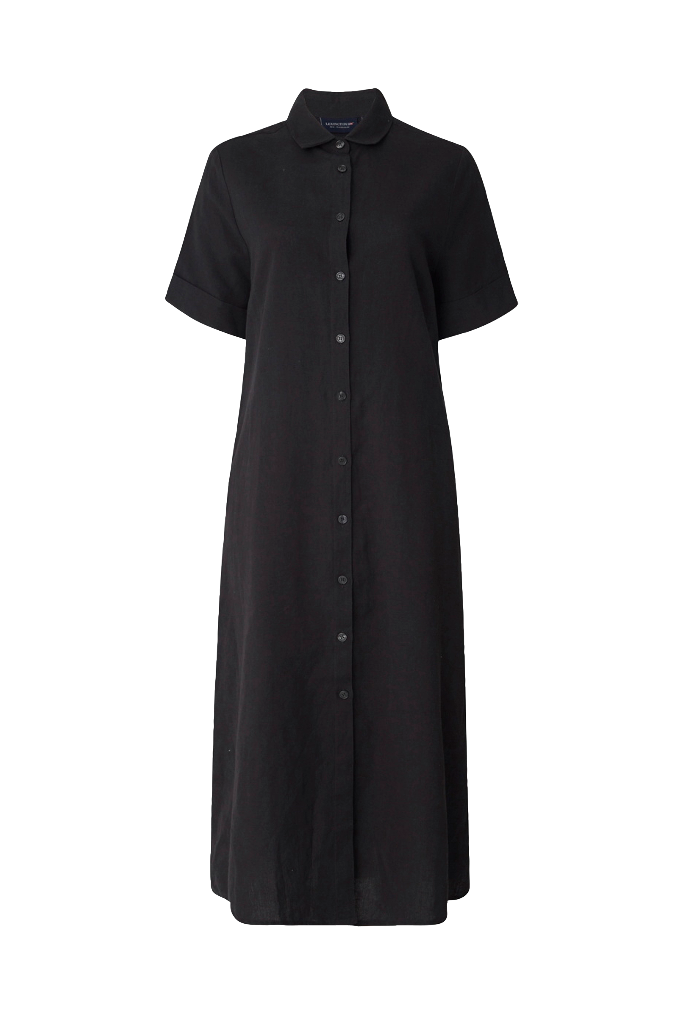 • Kjole i hørblanding• Knapper foran• Korte ærmer med oprullet• Lommer i siderne• Slidser i siderne• Længde: 117 cm i størrelse S