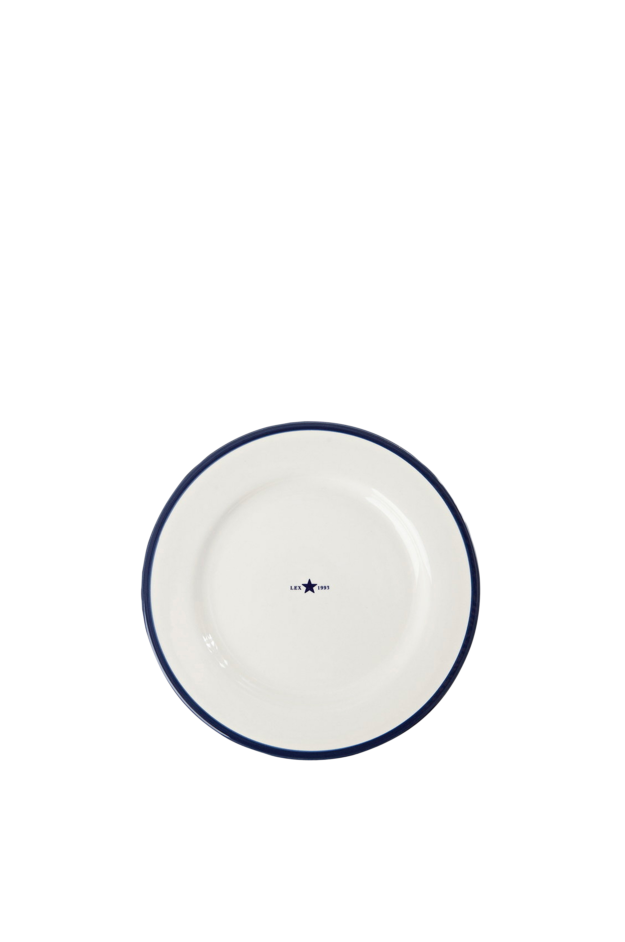 Håndmalet desserttallerken i keramisk stentøj med logo. Hver tallerken har et unikt præg. Mål: Diameter 22 cm.