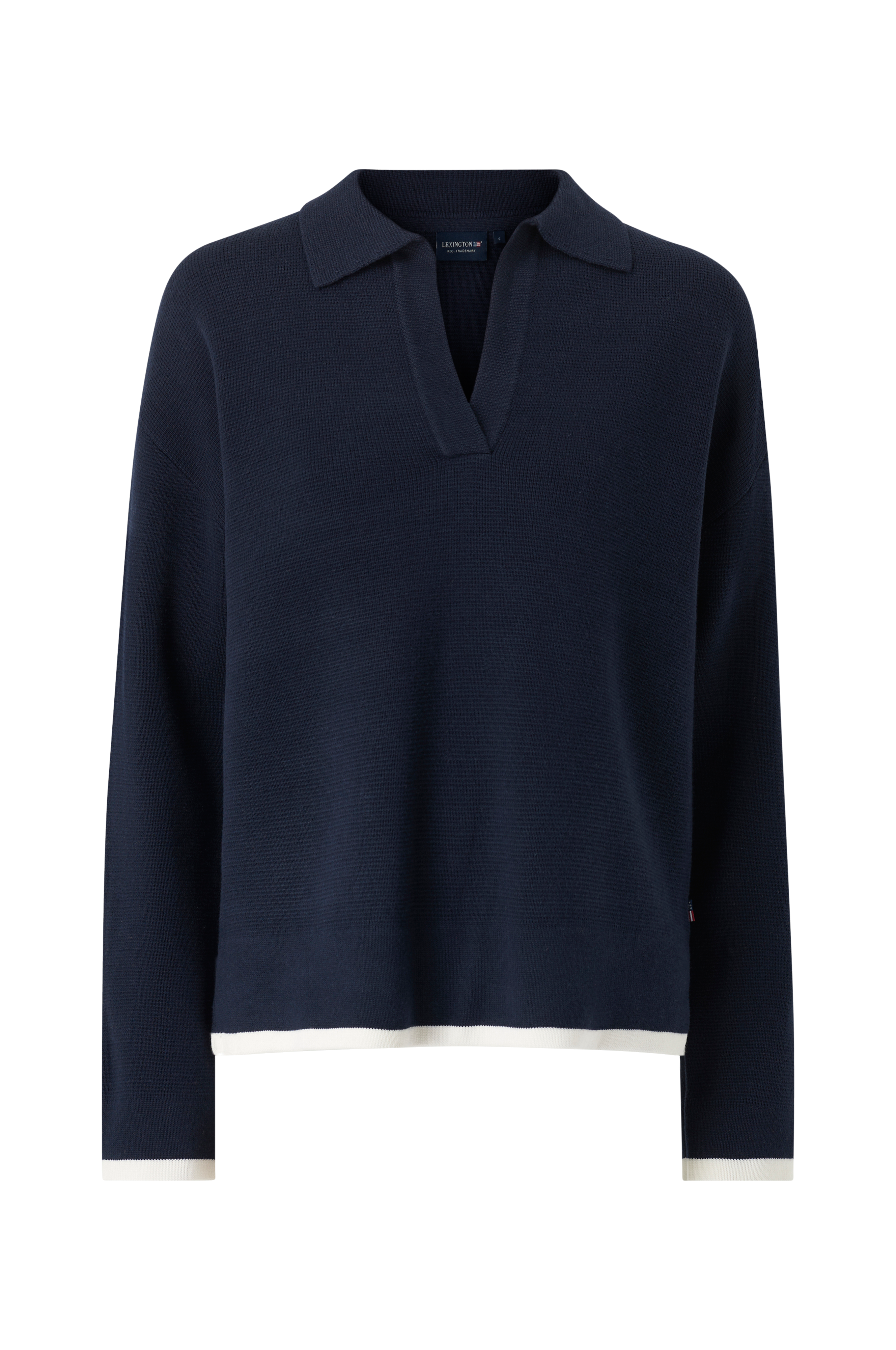 • Strikket trøje i let, varm bomuldsblanding• Afslappet pasform• V-formet halsudskæring• Nedsænkede skuldre• Ventilation nede i siderne