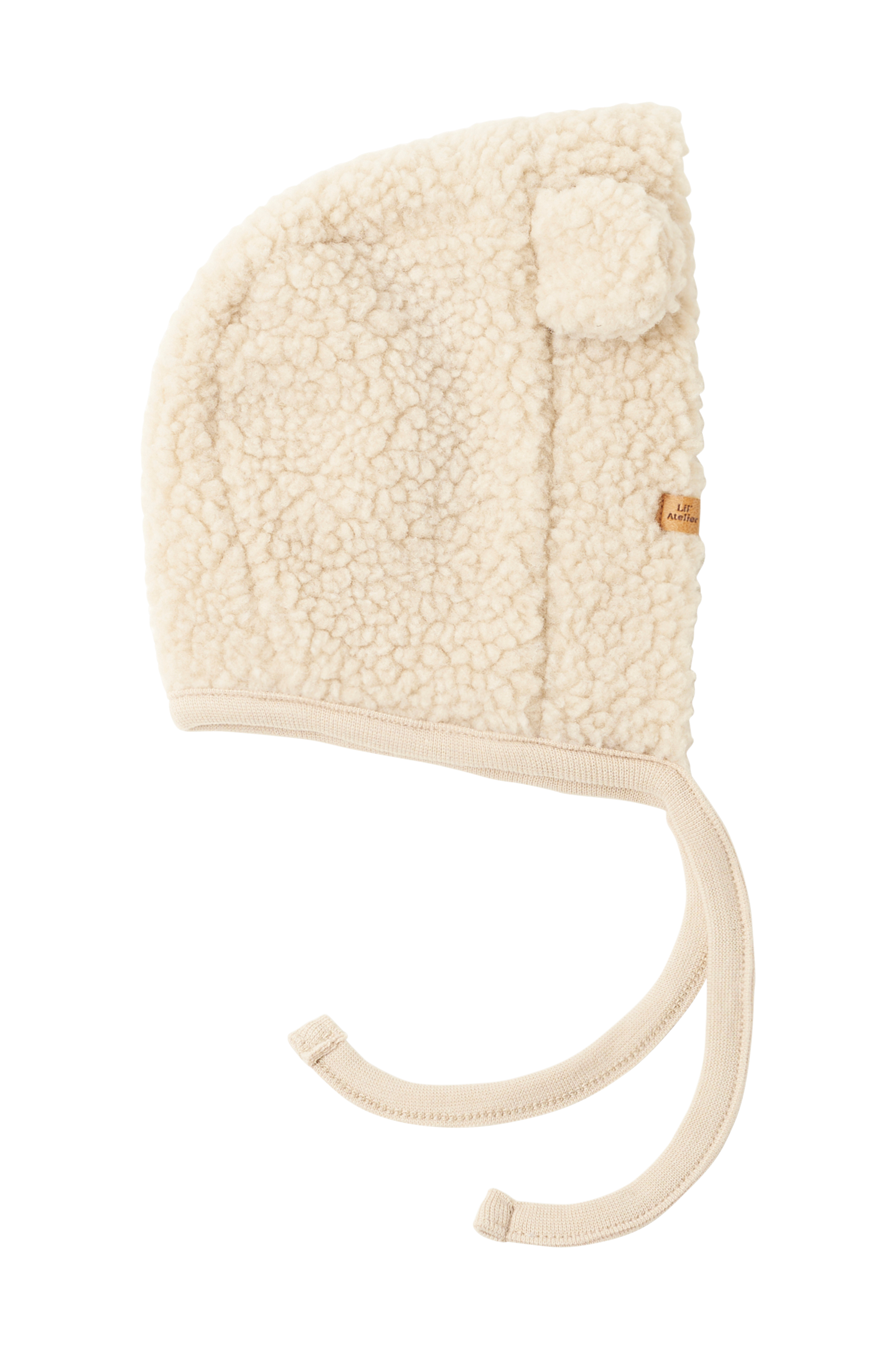 • Hue i teddy med påsyede ører• Bindebånd under hagen• Tekstilforing• Produktet indeholder genindvundet materiale, som genbruges for at reducere mængden af affald samtidigt med at der ikke anvendes nye ressourcer.