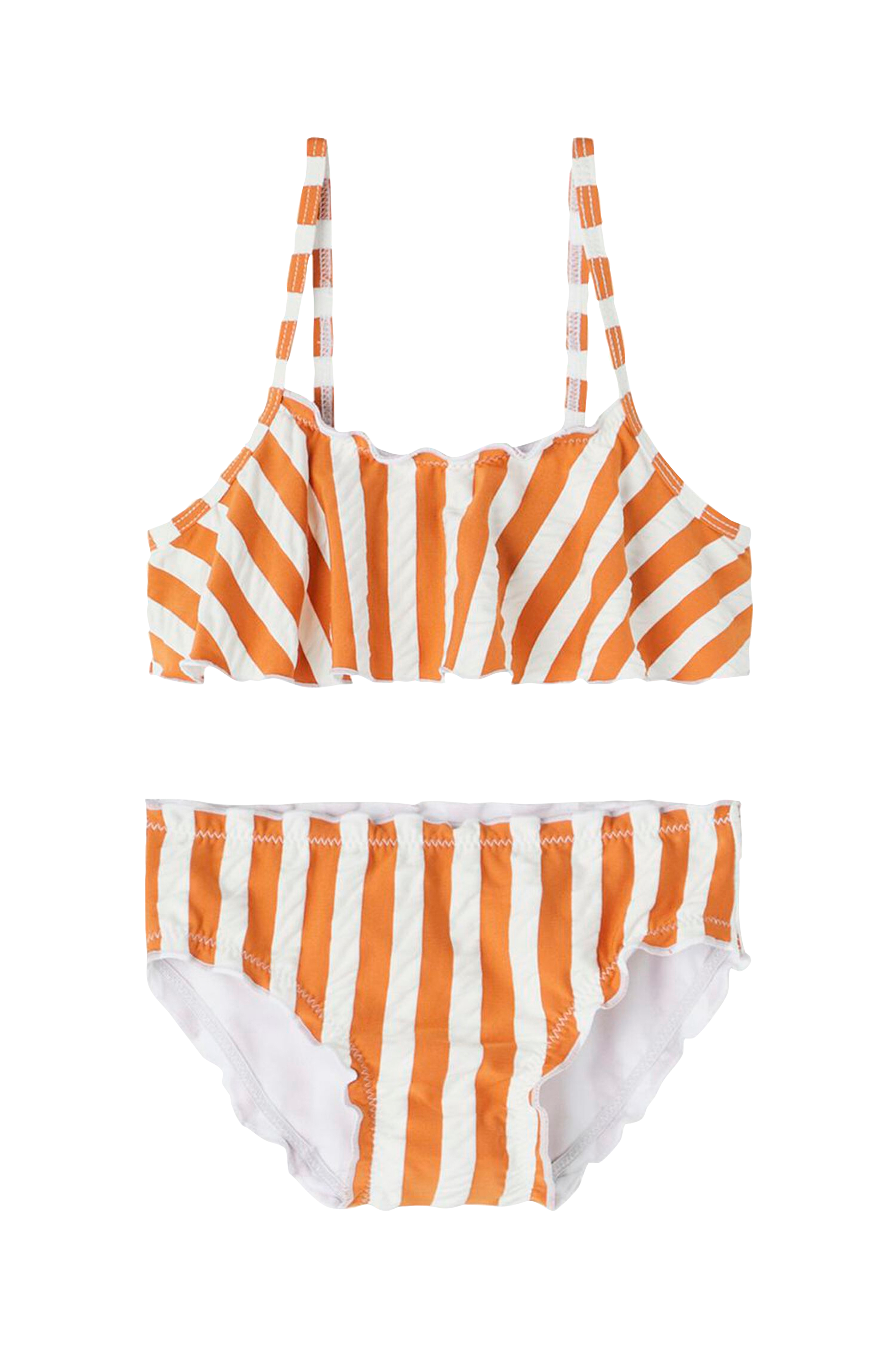• Todelt sæt• Bikini-bh med volant• Bikiniunderdel med rynket elastisk bånd