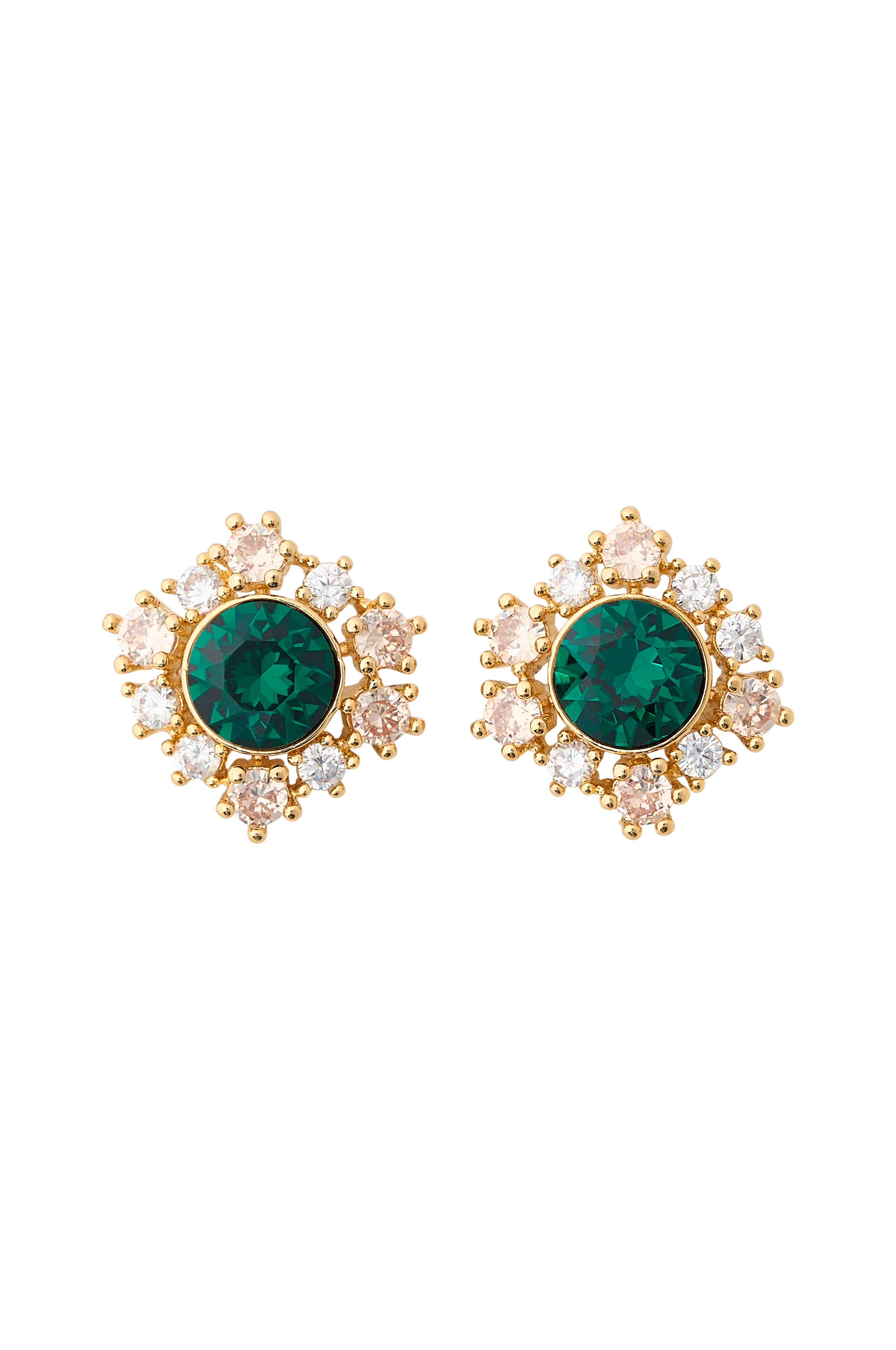 • Guldbelagte ørestikker i messing• Dekorativ, farvet sten i midten• Glitrende, små sten hele vejen rundt