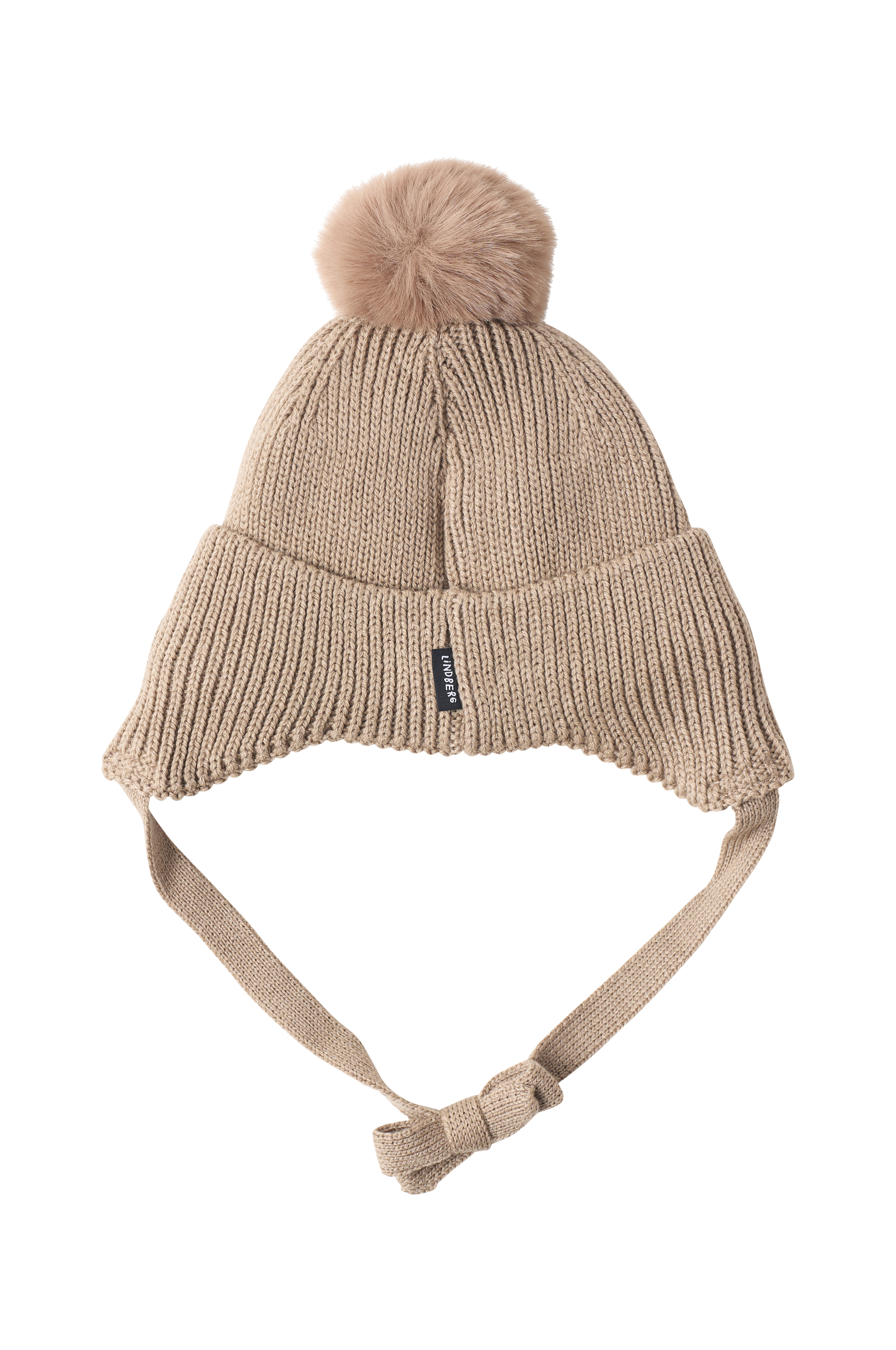 • Strikket babyhue• Luftig pompon• Blødt fleece for• Bindbart bånd under hagen