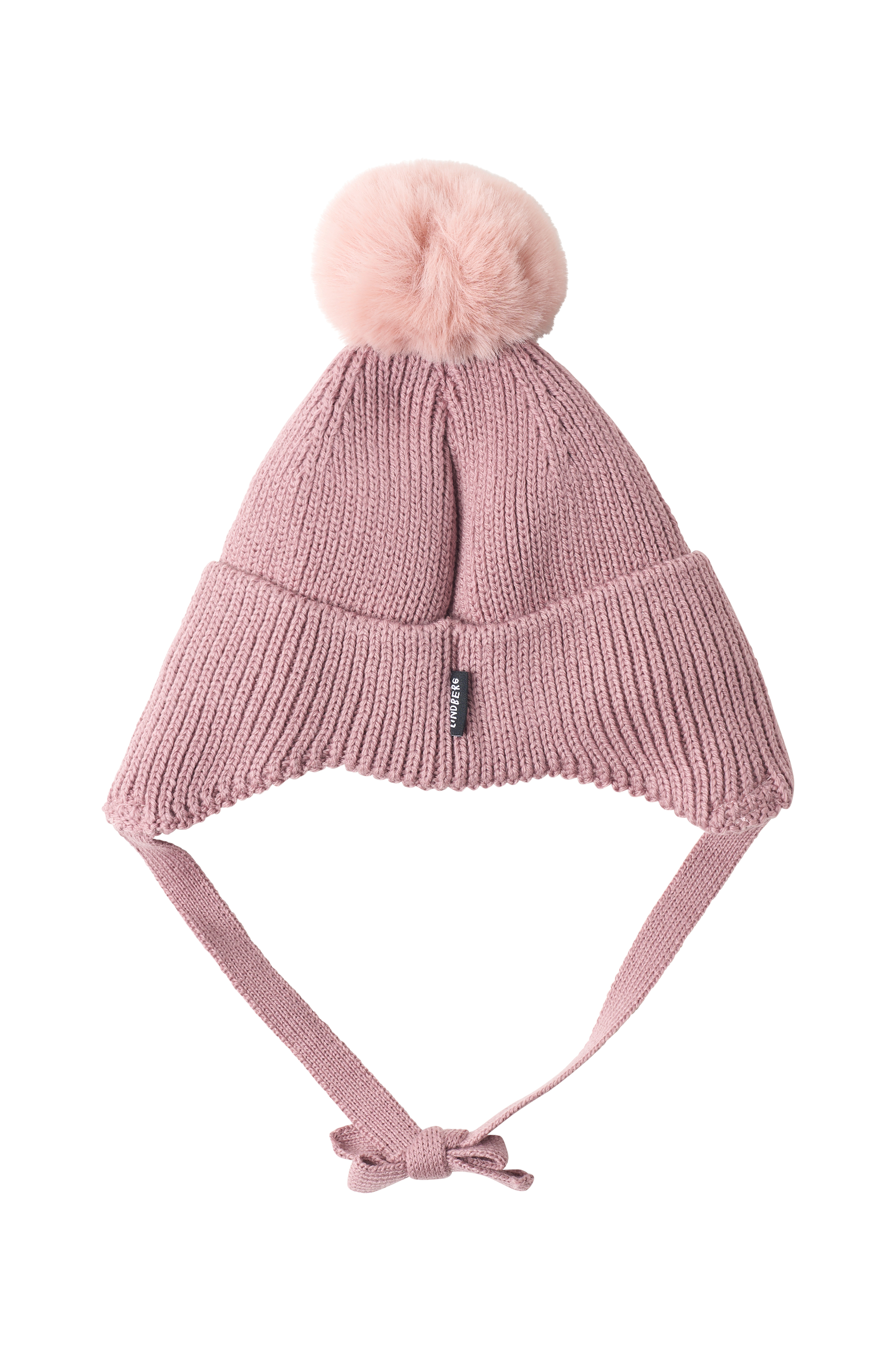 • Strikket babyhue• Luftig pompon• Blødt fleece for• Bindbart bånd under hagen