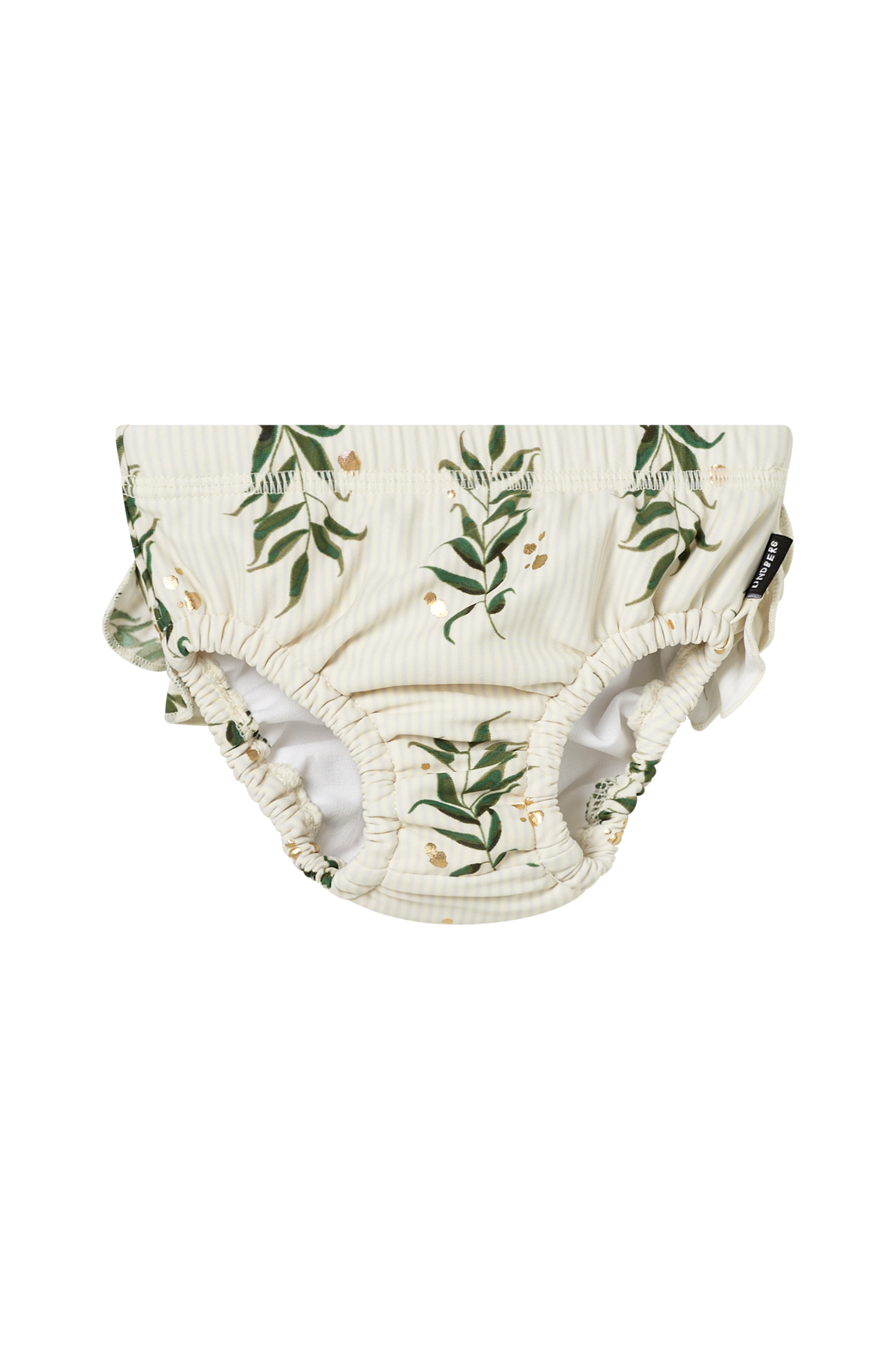 Badeble som kan bruges til badning både ude og inde. Stoffet har solfaktor 50+, og indersiden har en "blefunktion" som forhindrer lækage. Elastisk benåbning og elastisk talje med indvendig løbegang.