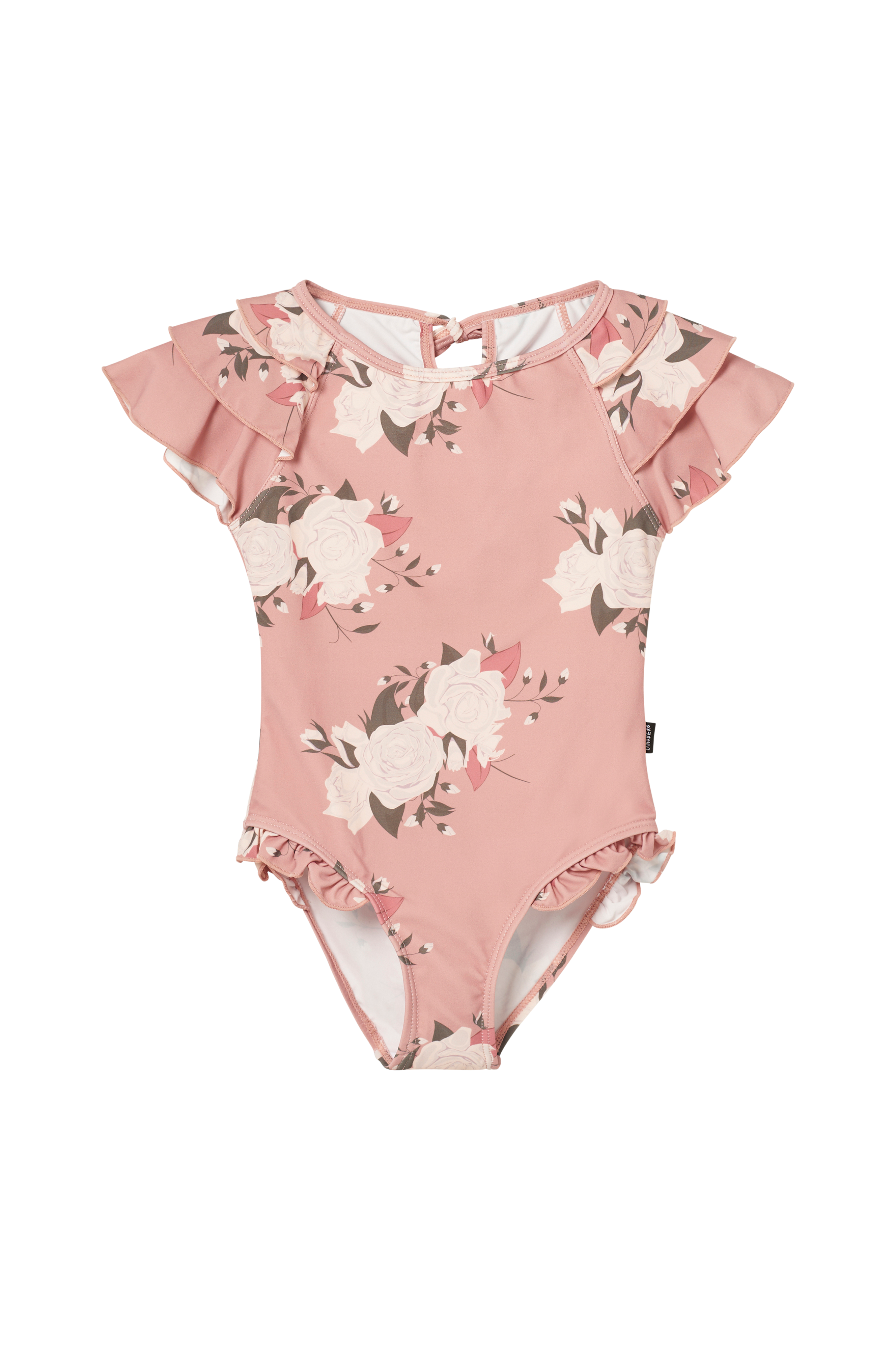 • Badedragt med ekstra stof over skuldrene• Rund halsudskæring• Ventilation med bindebånd i nakken• Flæsekanter på benåbningerne• Helt foret• Uv-beskyttelse: UPF 50+
