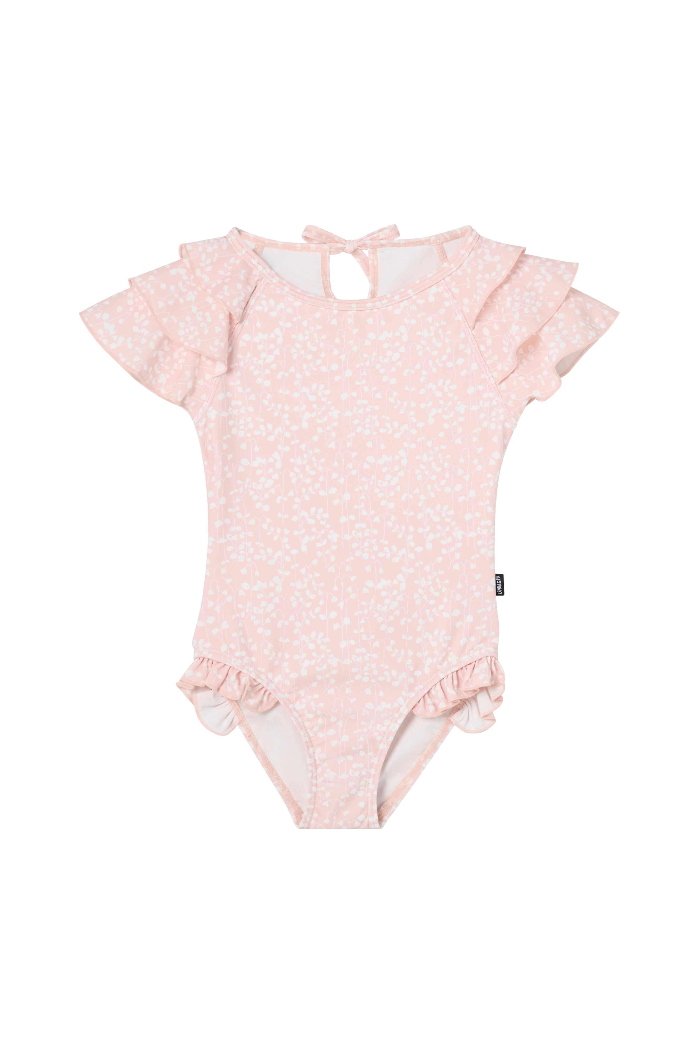 • Badedragt med ekstra stof over skuldrene• Rund halsudskæring• Ventilation med bindebånd i nakken• Flæsekanter på benåbningerne• Helt foret• Uv-beskyttelse: UPF 50+