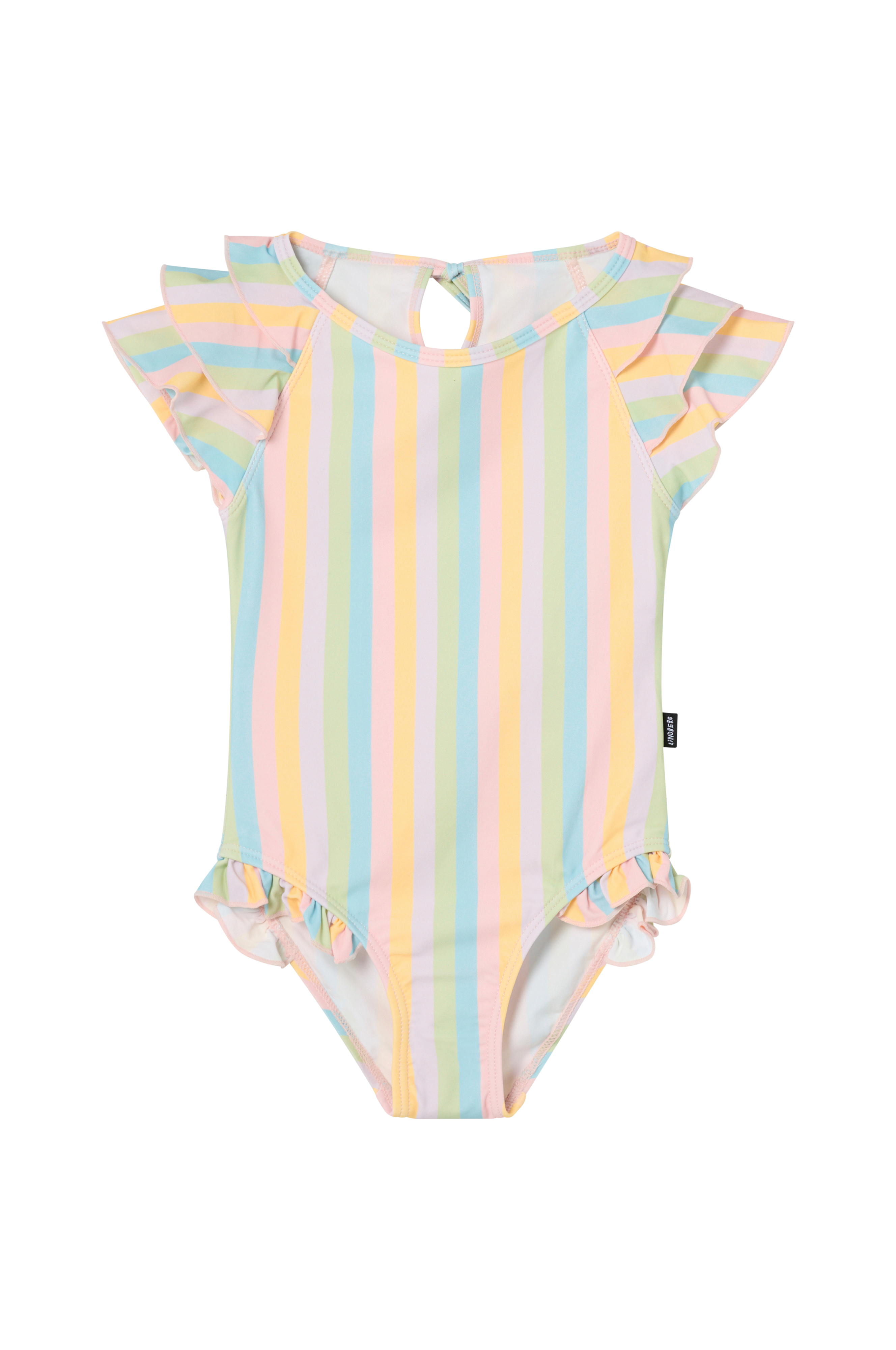 • Badedragt med ekstra stof over skuldrene• Rund halsudskæring• Ventilation med bindebånd i nakken• Flæsekanter på benåbningerne• Helt foret• Uv-beskyttelse: UPF 50+