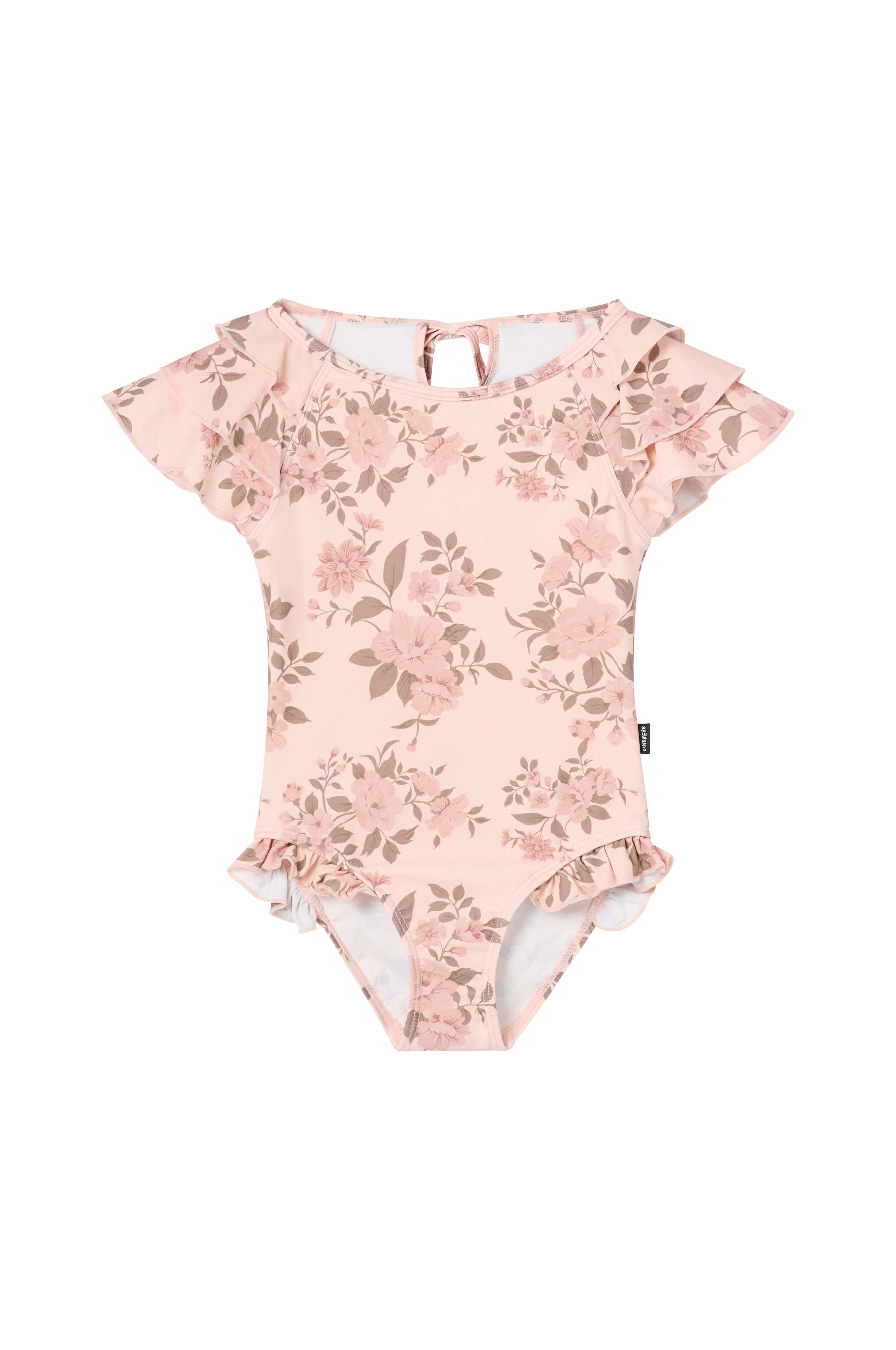 • Badedragt med ekstra stof over skuldrene• Rund halsudskæring• Ventilation med bindebånd i nakken• Flæsekanter på benåbningerne• Helt foret• Uv-beskyttelse: UPF 50+