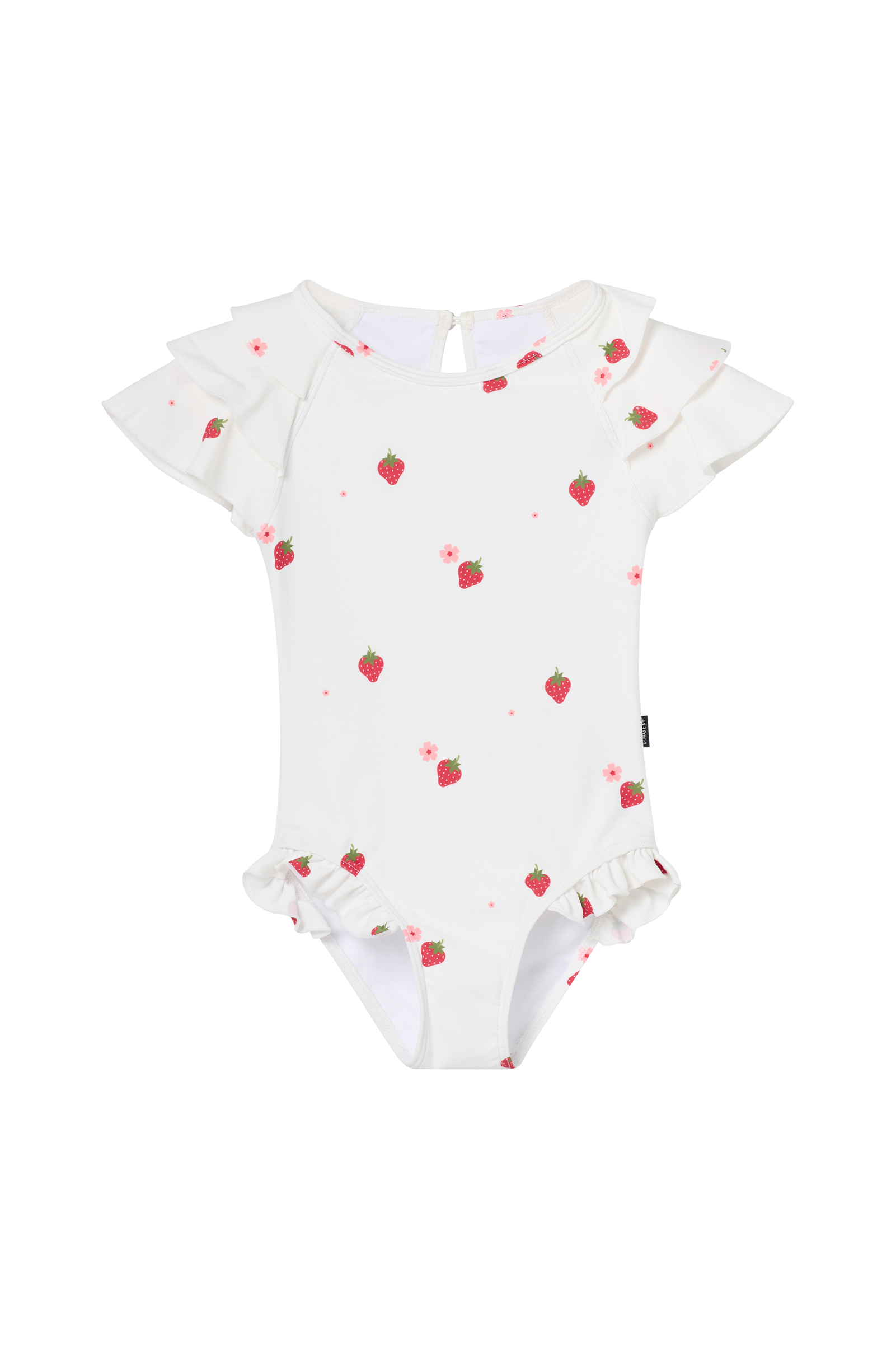 • Badedragt med ekstra stof over skuldrene• Rund halsudskæring• Ventilation med bindebånd i nakken• Flæsekanter på benåbningerne• Helt foret• Uv-beskyttelse: UPF 50+