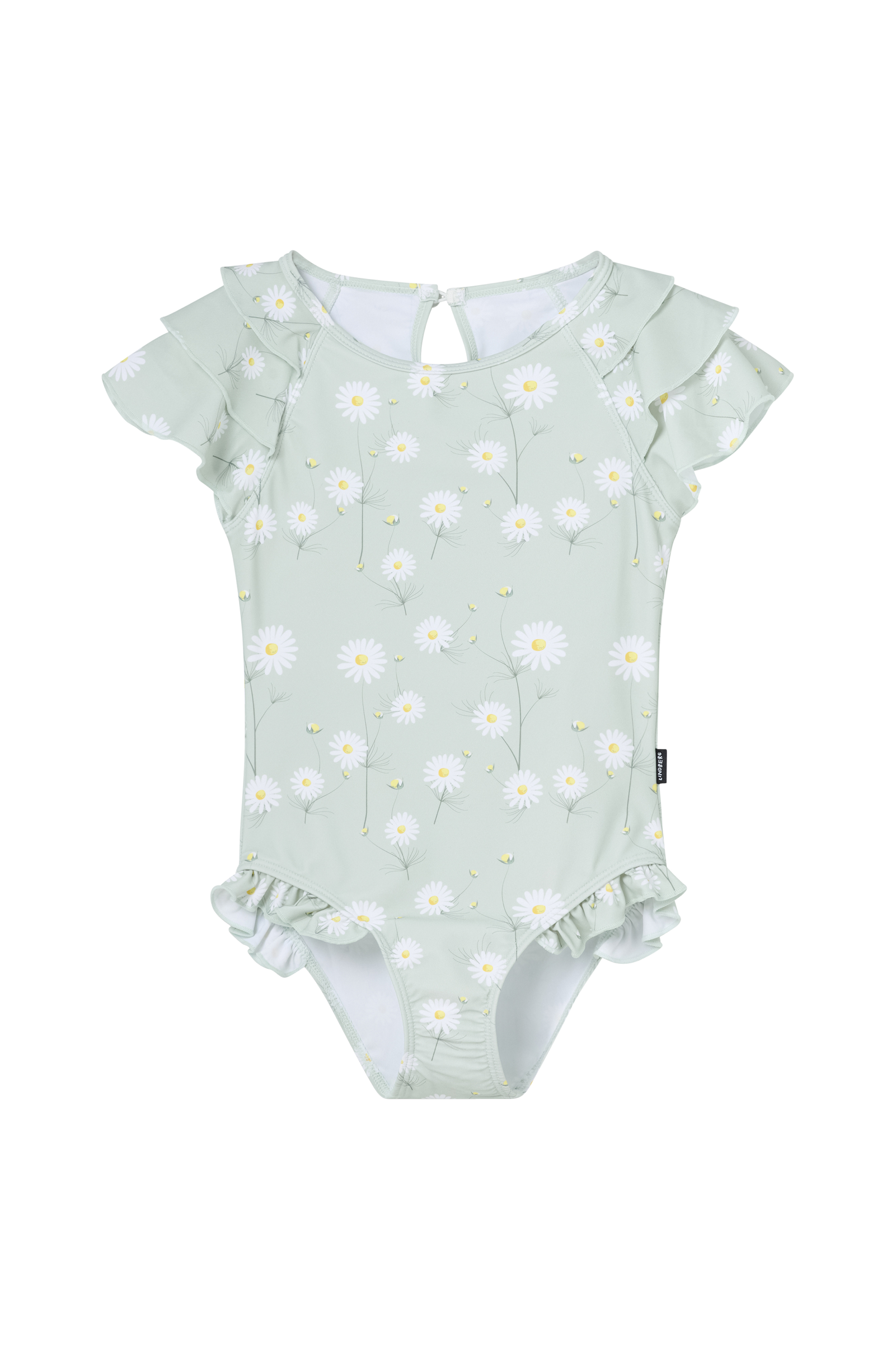 • Badedragt med ekstra stof over skuldrene• Rund halsudskæring• Ventilation med bindebånd i nakken• Flæsekanter på benåbningerne• Helt foret• Uv-beskyttelse: UPF 50+