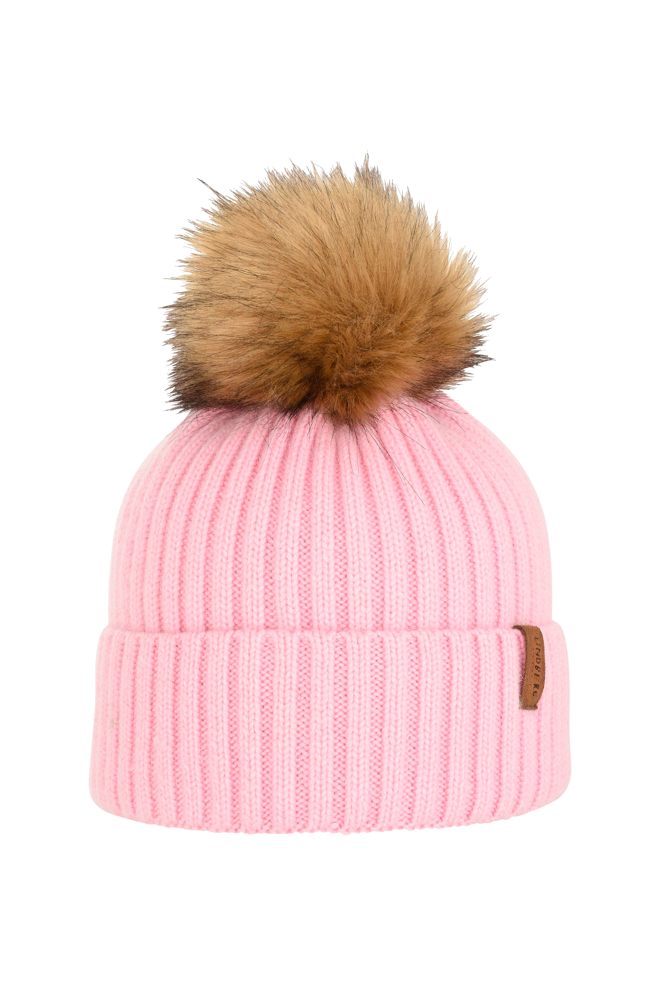 Ribstrikket, eksklusiv hue Sibo Hat fra Lindberg i materialeblanding af uld og kashmir med en kvast i lodden kunstpels.