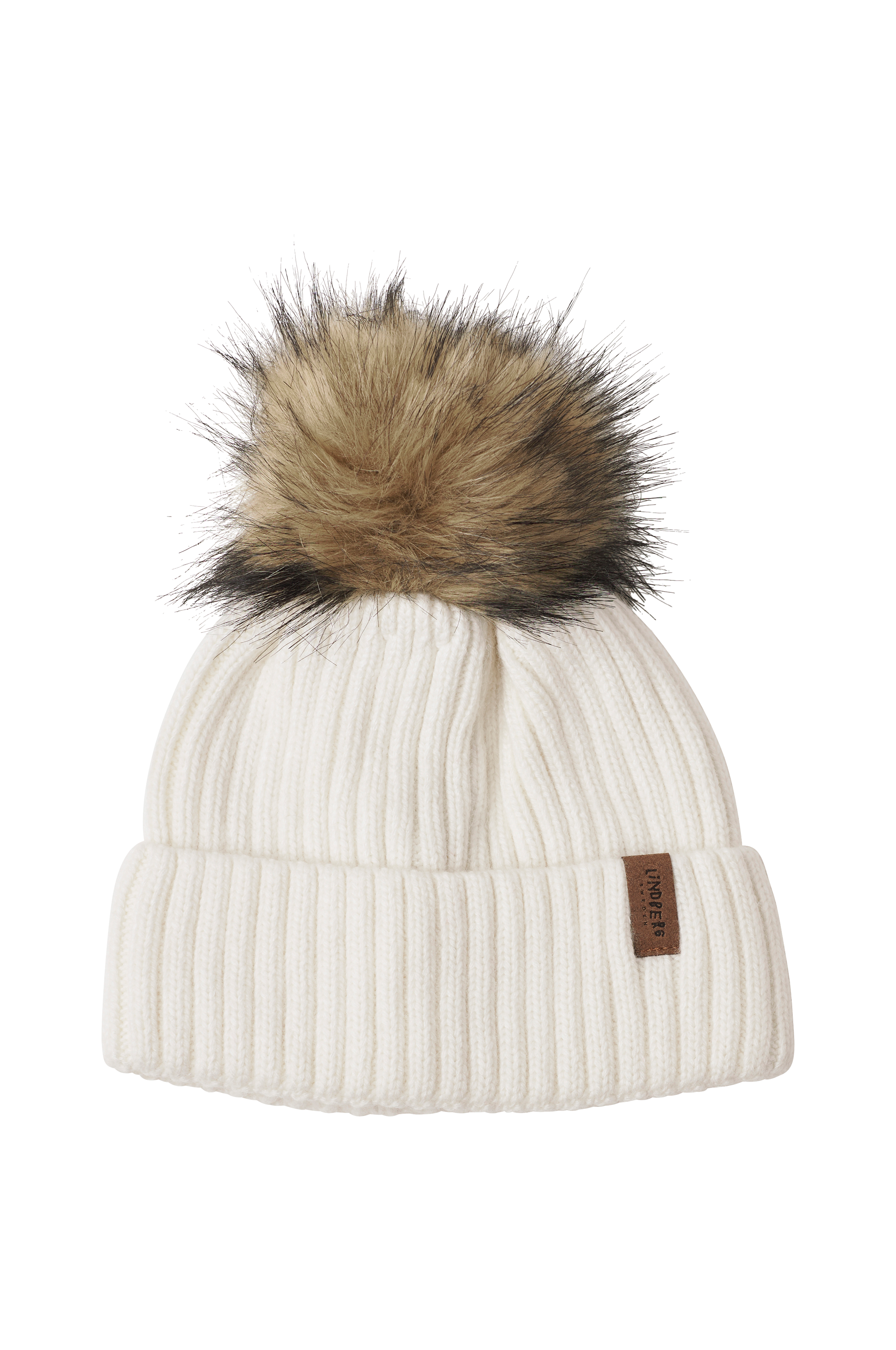 Ribstrikket, eksklusiv hue Sibo Hat fra Lindberg i materialeblanding af uld og kashmir med en kvast i lodden kunstpels.