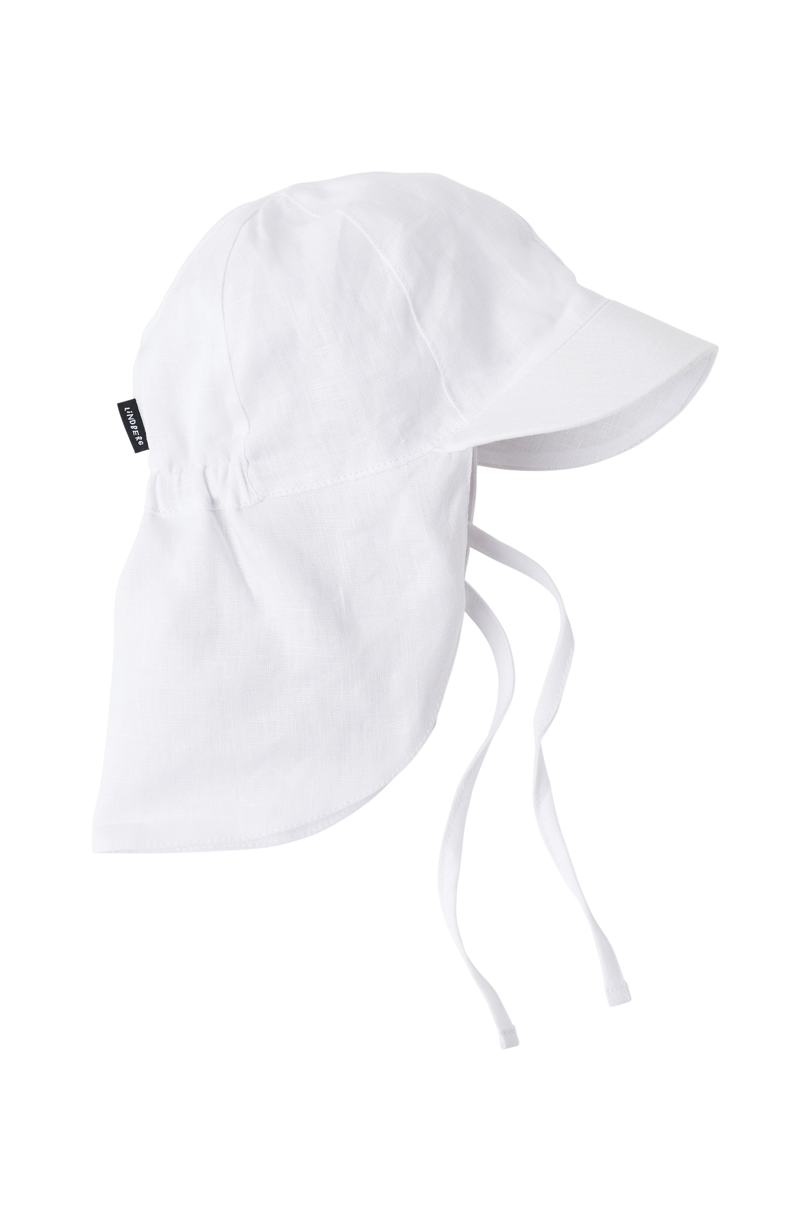 En behagelig hat af 100 % hør med solbeskyttelsesfaktor (UPF) 30+, visir og ekstra stof i nakken, der beskytter godt mod solens stråler.