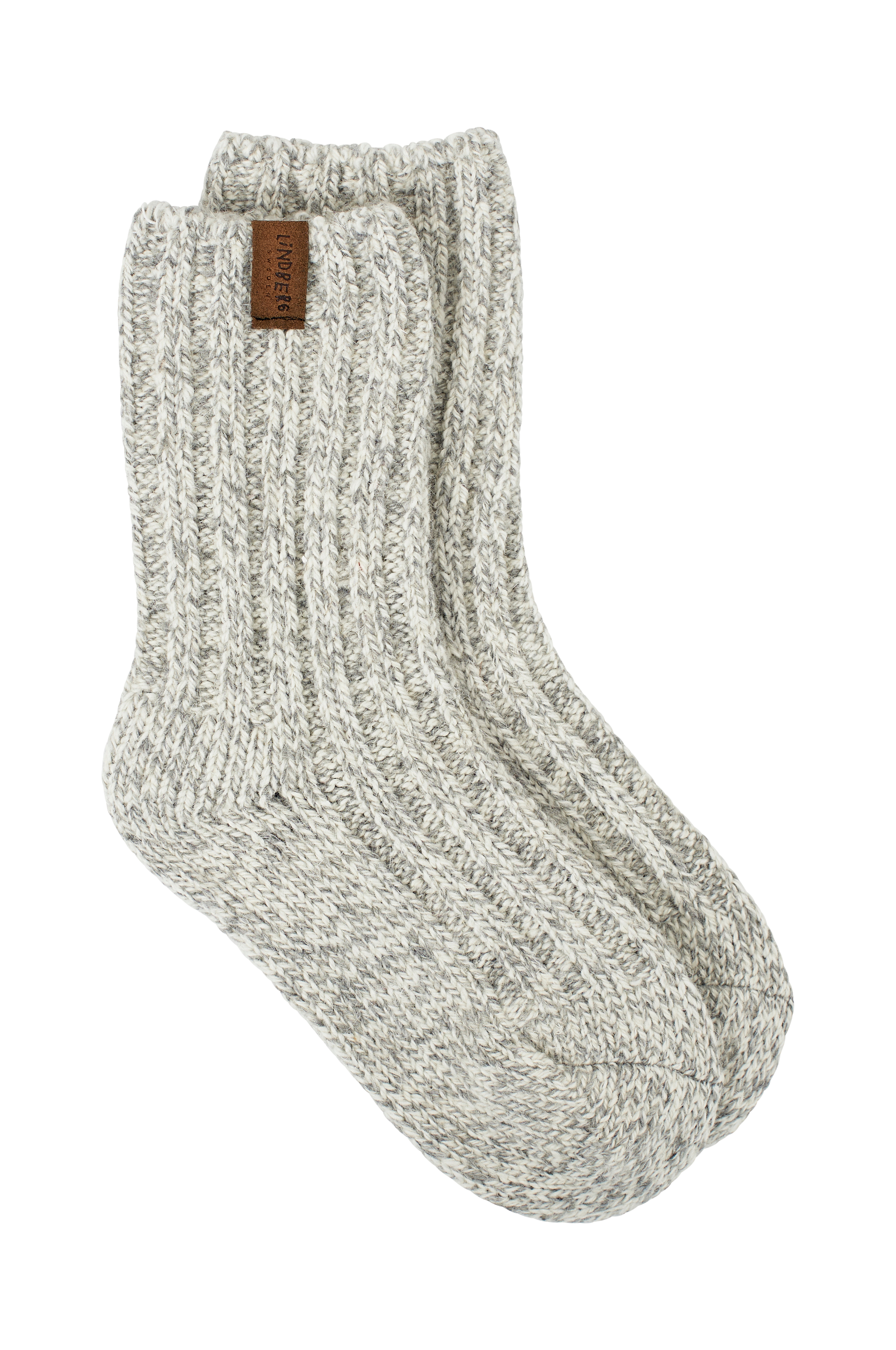 Ragsokker Ragge fra Lindberg i klassisk, ribstrikket model i uldblanding med logo foroven.