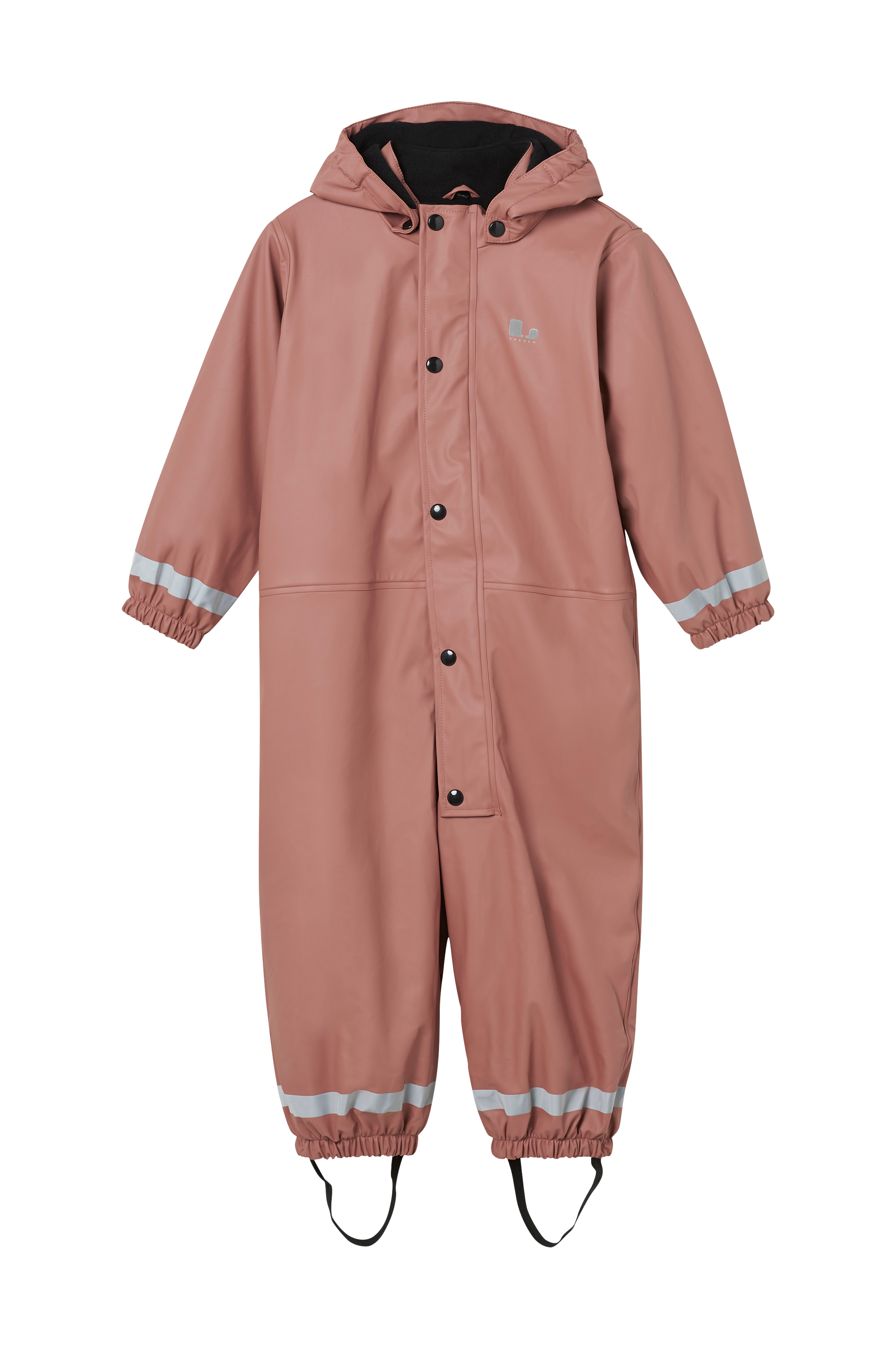 Regnheldragt med fleecefor er perfekt til dage med regn og sjap. Fremstillet i et vandtæt PU-materiale med svejsede sømme og refleksdetaljer rundt om. Vandsøjletryk 8000 mm.
