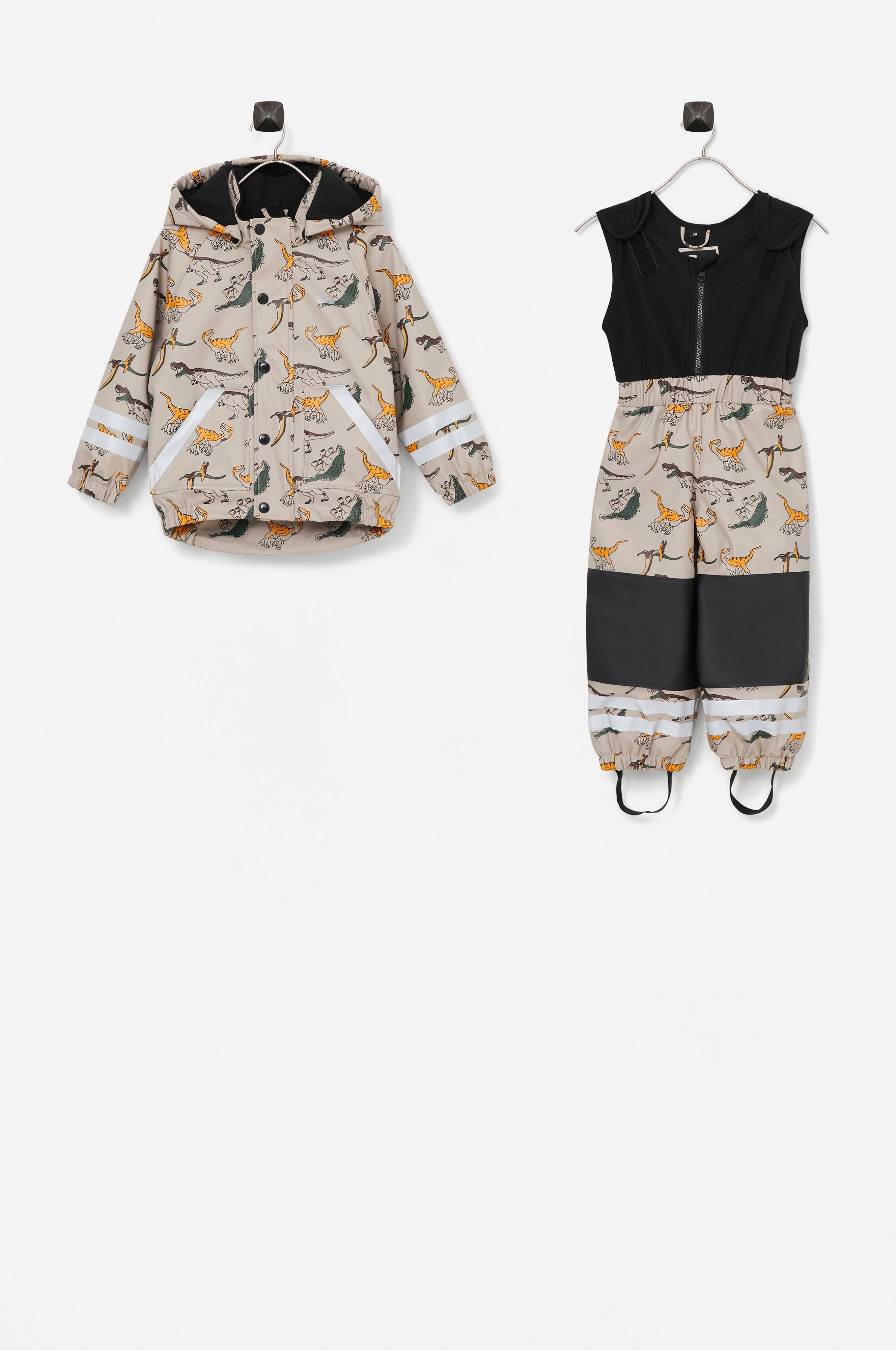 Regnsæt med blødt fleecefor er perfekt til dage med regn og sjap, hvor du vil holde dit barn tørt og varmt. Fremstillet af 100% PU, som er vandtæt, vandsøjletryk 8.000 mm. Alle sømme er svejsede. Jakken har aftagelig hætte med elastik i siderne for optimal pasform. Høj krave med fleece på indersiden. Lynlås med hagebeskytter og beskyttende overfald over lynlåsen med trykknapper. To lommer og indsat elastik i siderne forneden. Buksen har en fleecevest, som kan justeres ved skuldrene med velcrobånd. Elastik i taljen og benkanten. Aftagelige, justerbare elastiske fodstropper. Både jakken og buksen har refleksdetaljer hele vejen rundt.