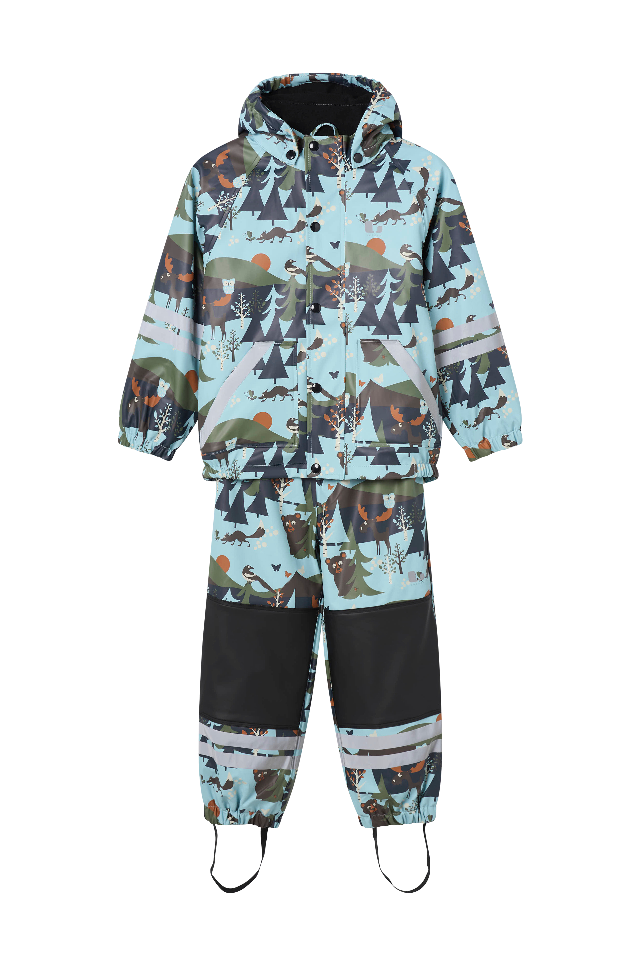 Regnsæt med blødt fleecefor er perfekt til dage med regn og sjap, hvor du vil holde dit barn tørt og varmt. Fremstillet af 100% PU, som er vandtæt, vandsøjletryk 8.000 mm. Alle sømme er svejsede. Jakken har aftagelig hætte med elastik i siderne for optimal pasform. Høj krave med fleece på indersiden. Lynlås med hagebeskytter og beskyttende overfald over lynlåsen med trykknapper. To lommer og indsat elastik i siderne forneden. Buksen har en fleecevest, som kan justeres ved skuldrene med velcrobånd. Elastik i taljen og benkanten. Aftagelige, justerbare elastiske fodstropper. Både jakken og buksen har refleksdetaljer hele vejen rundt.