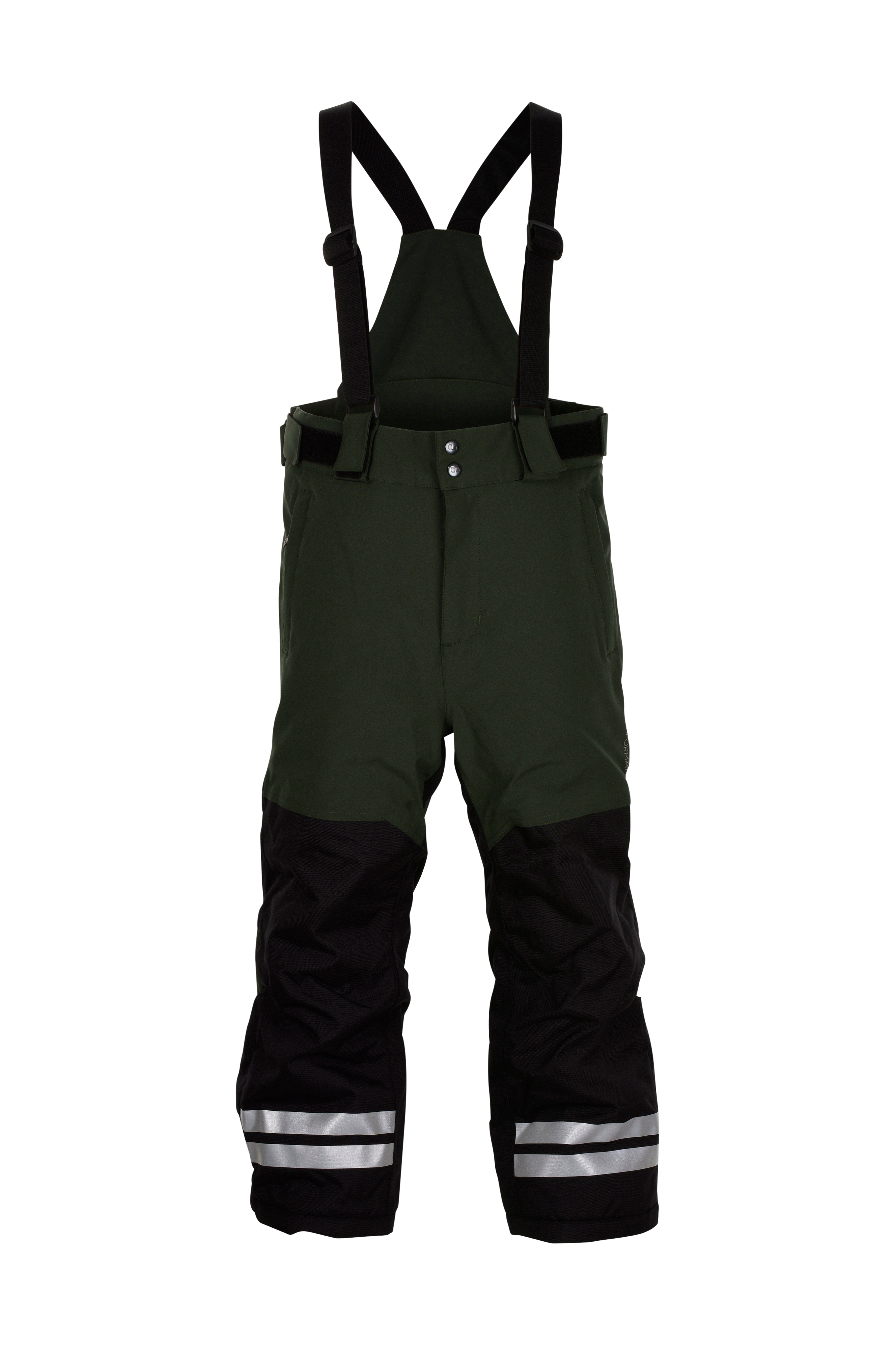 Elastiske, justerbare og aftagelig seler. Linning med to trykknapper og gylp med lynlås. To lynlåsforseglede lommer foran. Regulerbar taljevidde med velcroremme i siderne. Bukserne har snefang og reflekser i benkanten. Benkant der kan justeres med velcro. Elastiske, aftagelige og justerbare fodstropper.