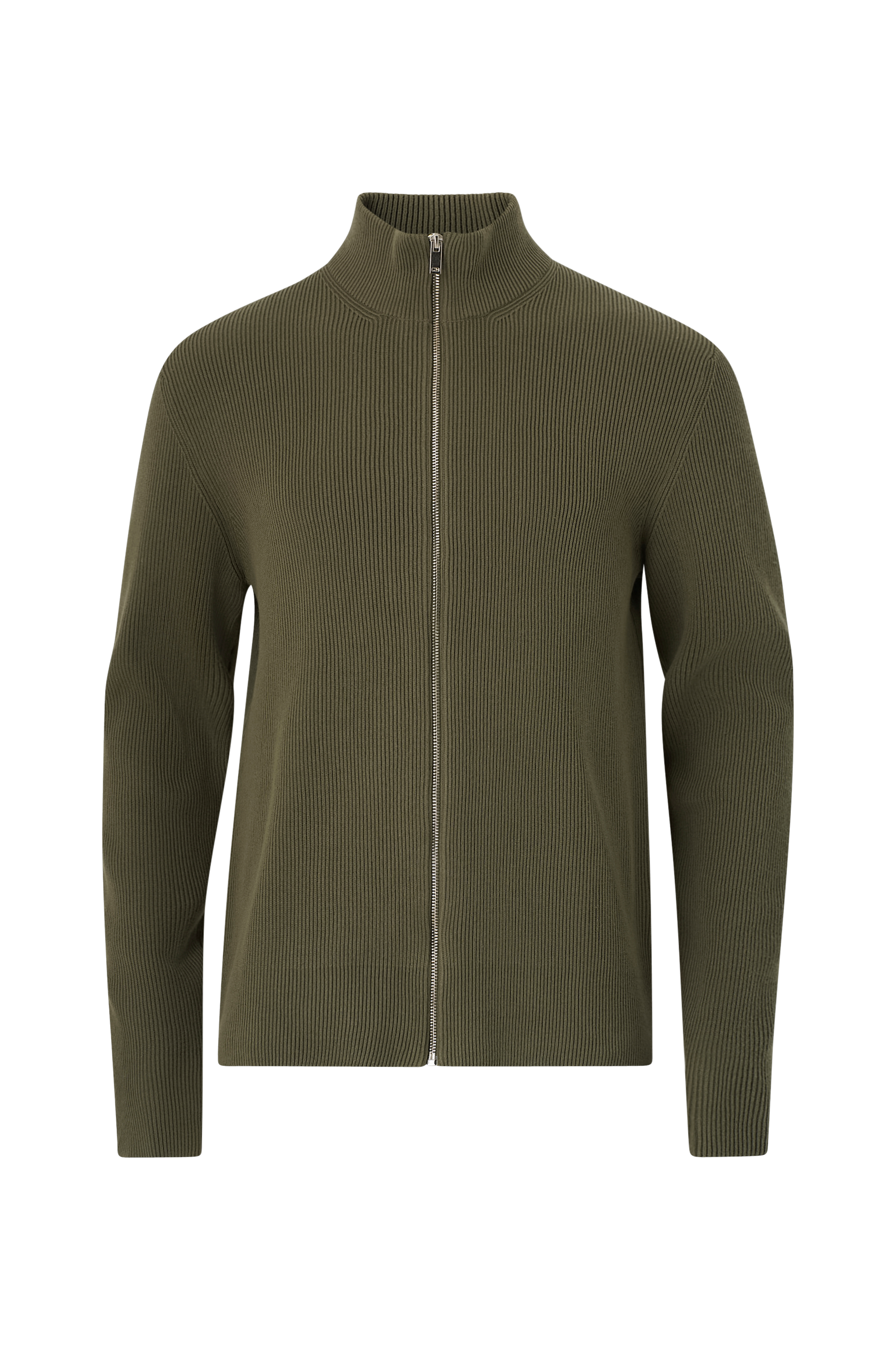 • Lige, ribstrikket model• Høj krave• Lynlås foran