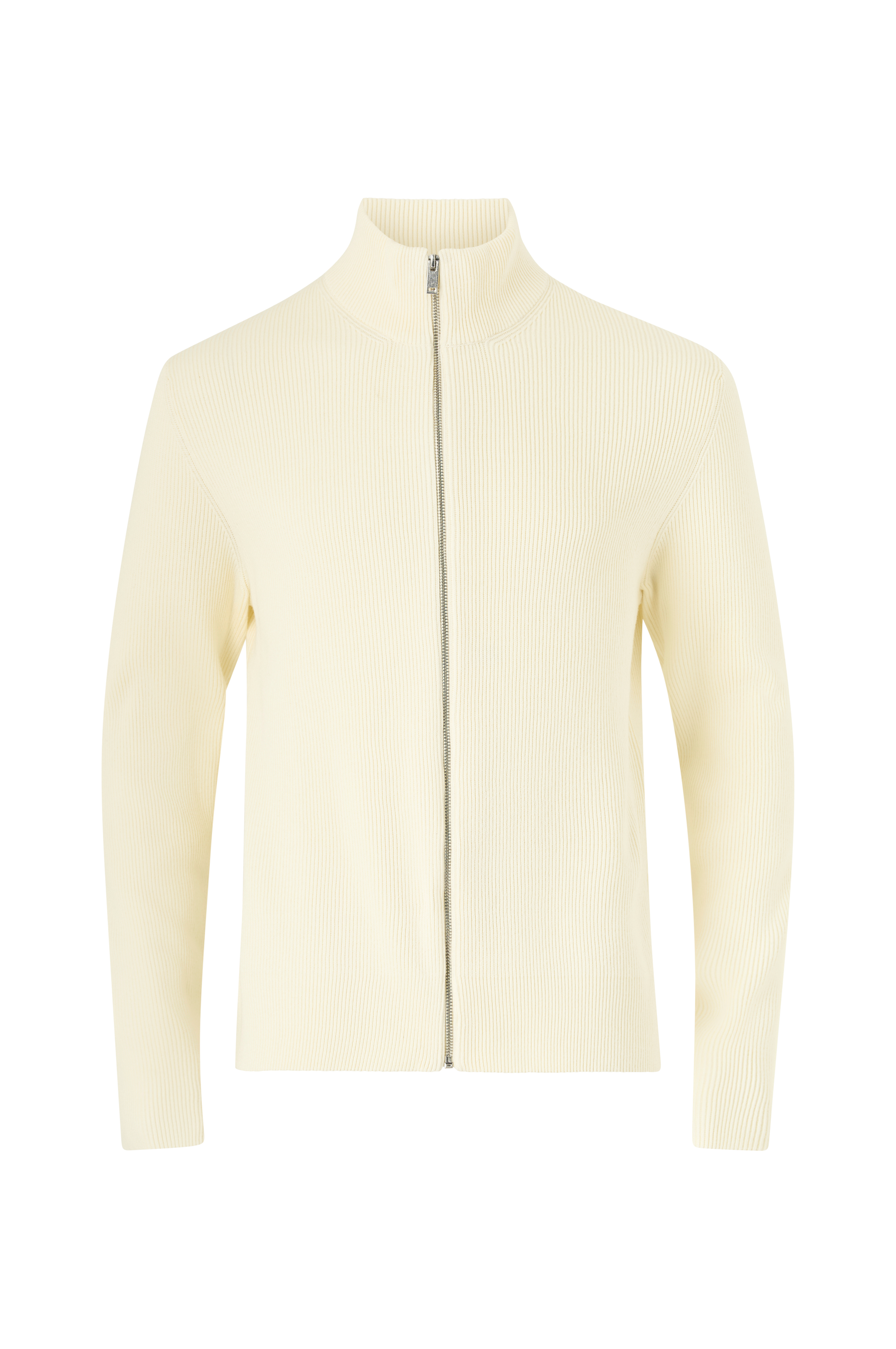 • Lige, ribstrikket model• Høj krave• Lynlås foran